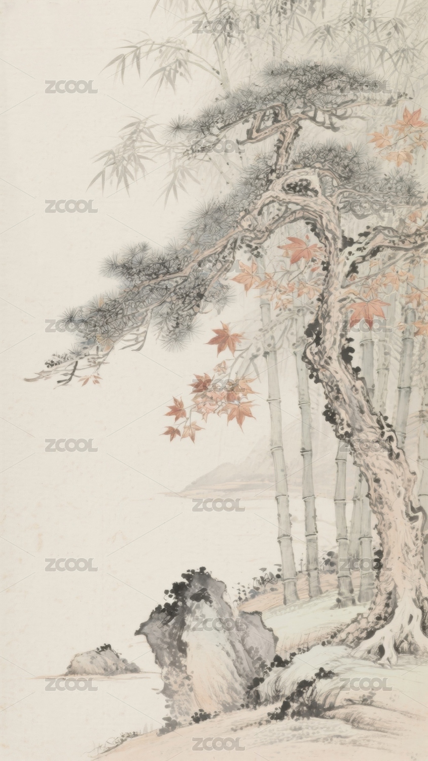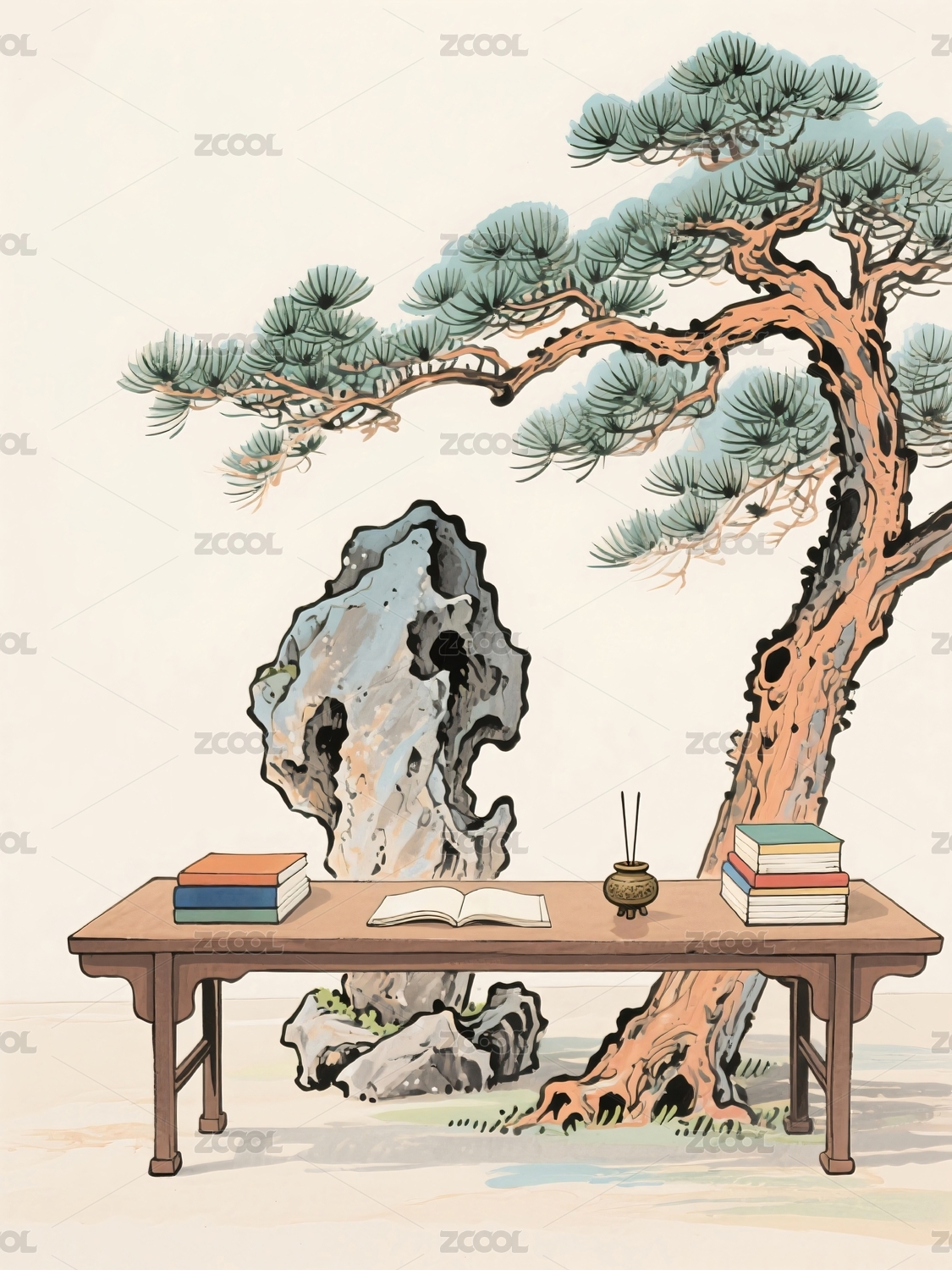 树木,岩石,桌子,框架,传统,纹理,摆件,桌面,浅色,静物