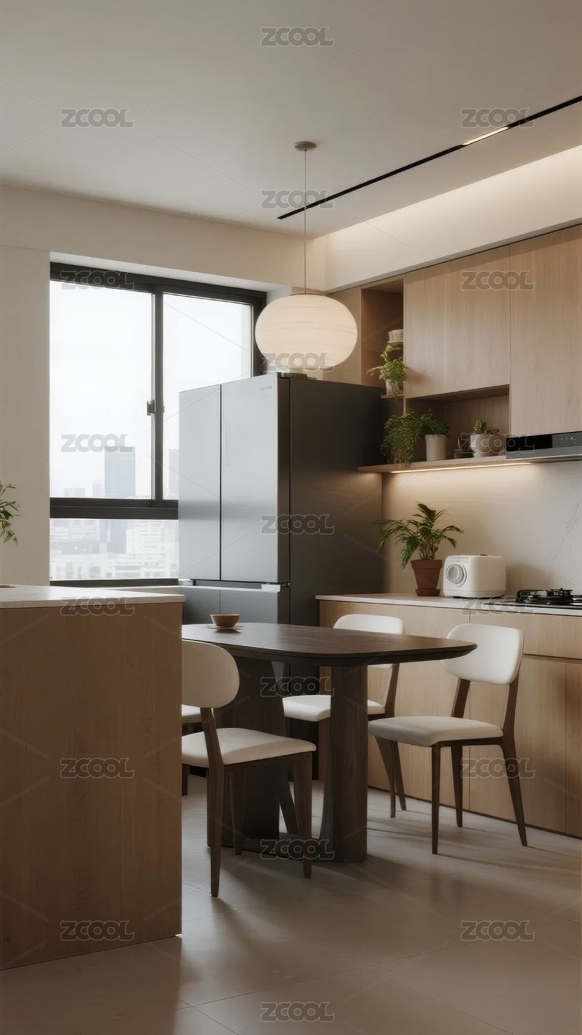 现代厨房与餐桌空间