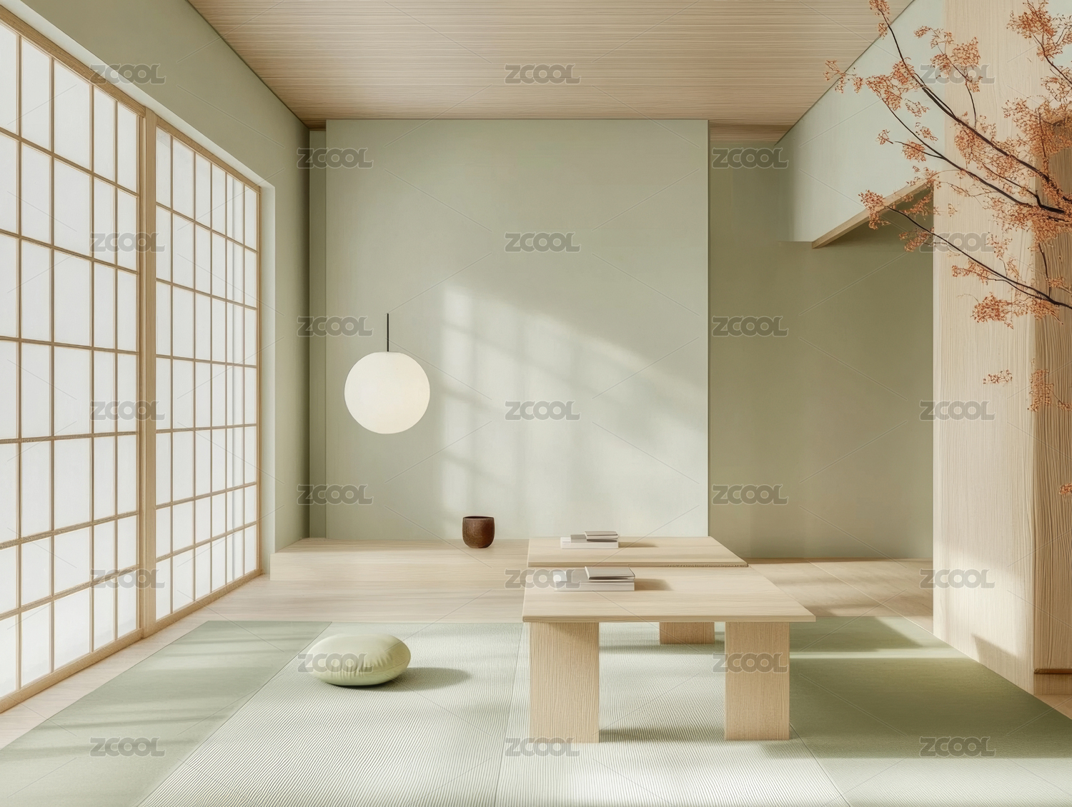 装修,日式,起居室,效果图,和风,简约,自然,木质,榻榻米,纸拉门