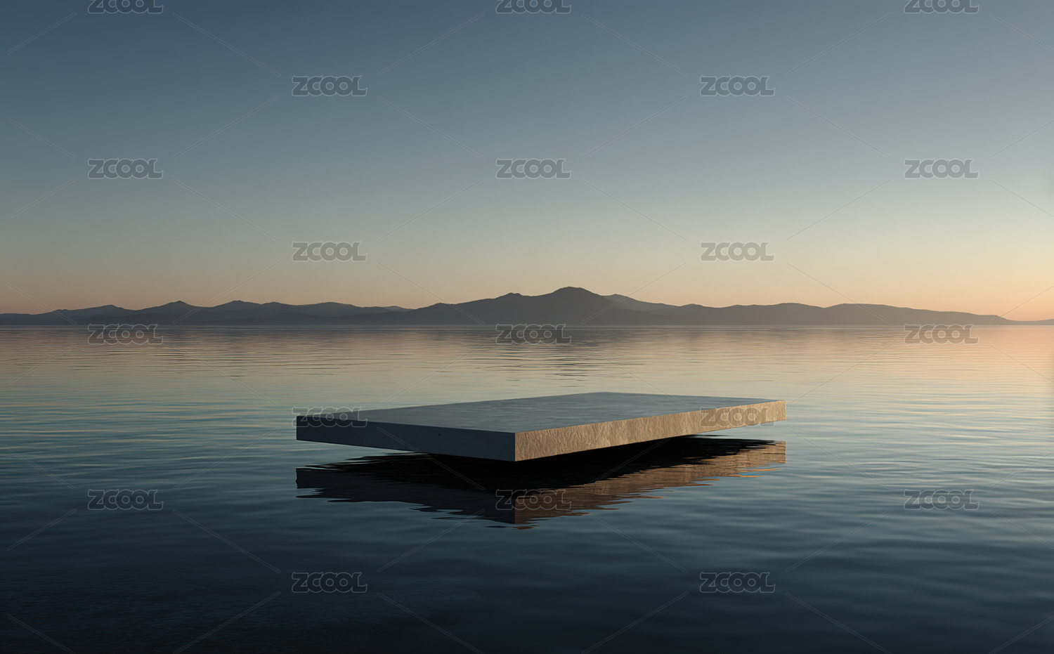 现代,自然,简约,水面,平台,山脉,倒影,景观,水平线,户外