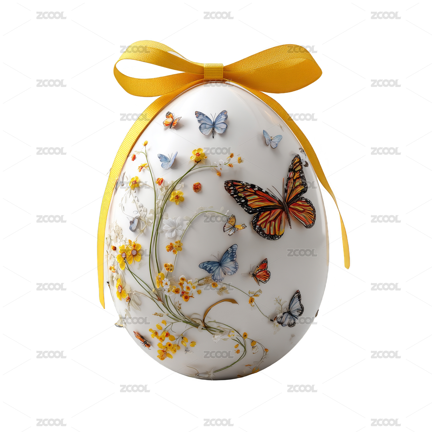 带有彩色花卉和蝴蝶图案的装饰蛋
