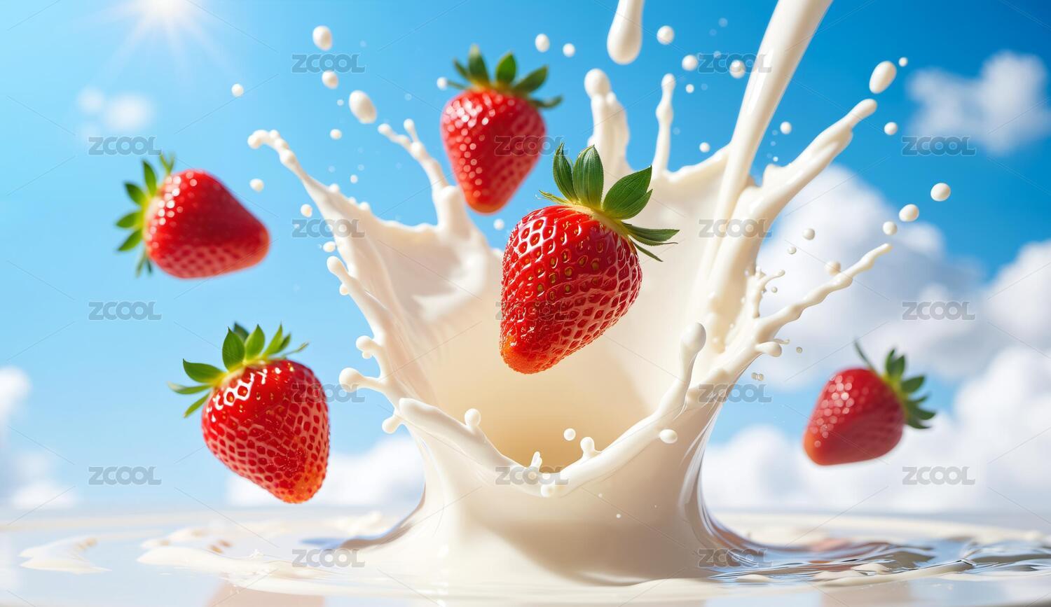 鲜红草莓与牛奶激荡的瞬间