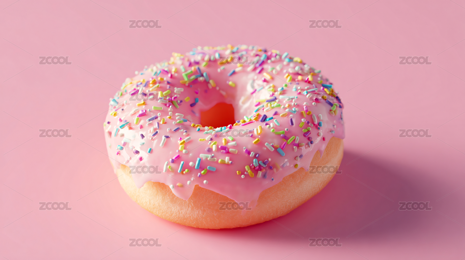 粉色甜美的甜甜圈放在一个粉色的空间中