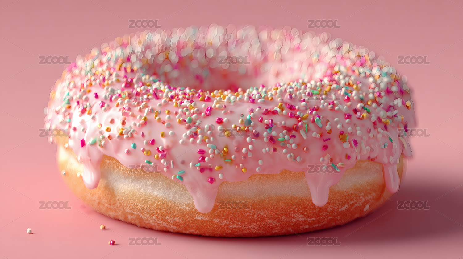 粉色糖霜撒满彩色糖粒的甜甜圈