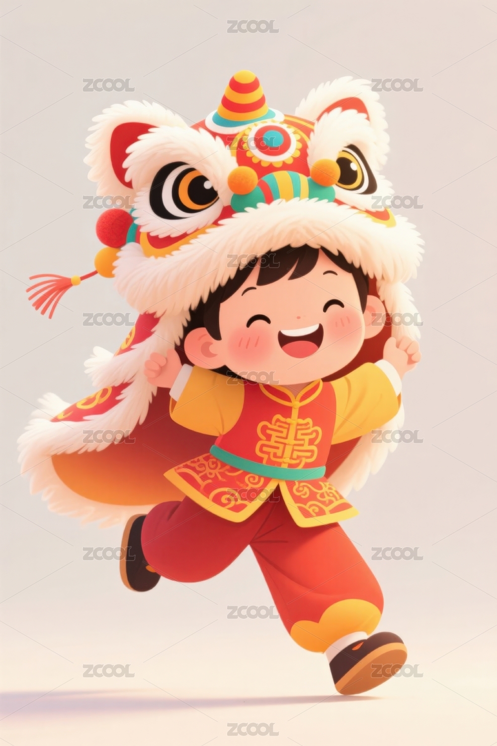 奔跑,帽子,狮子,红色,装饰,节日,喜庆,传统,文化,舞狮
