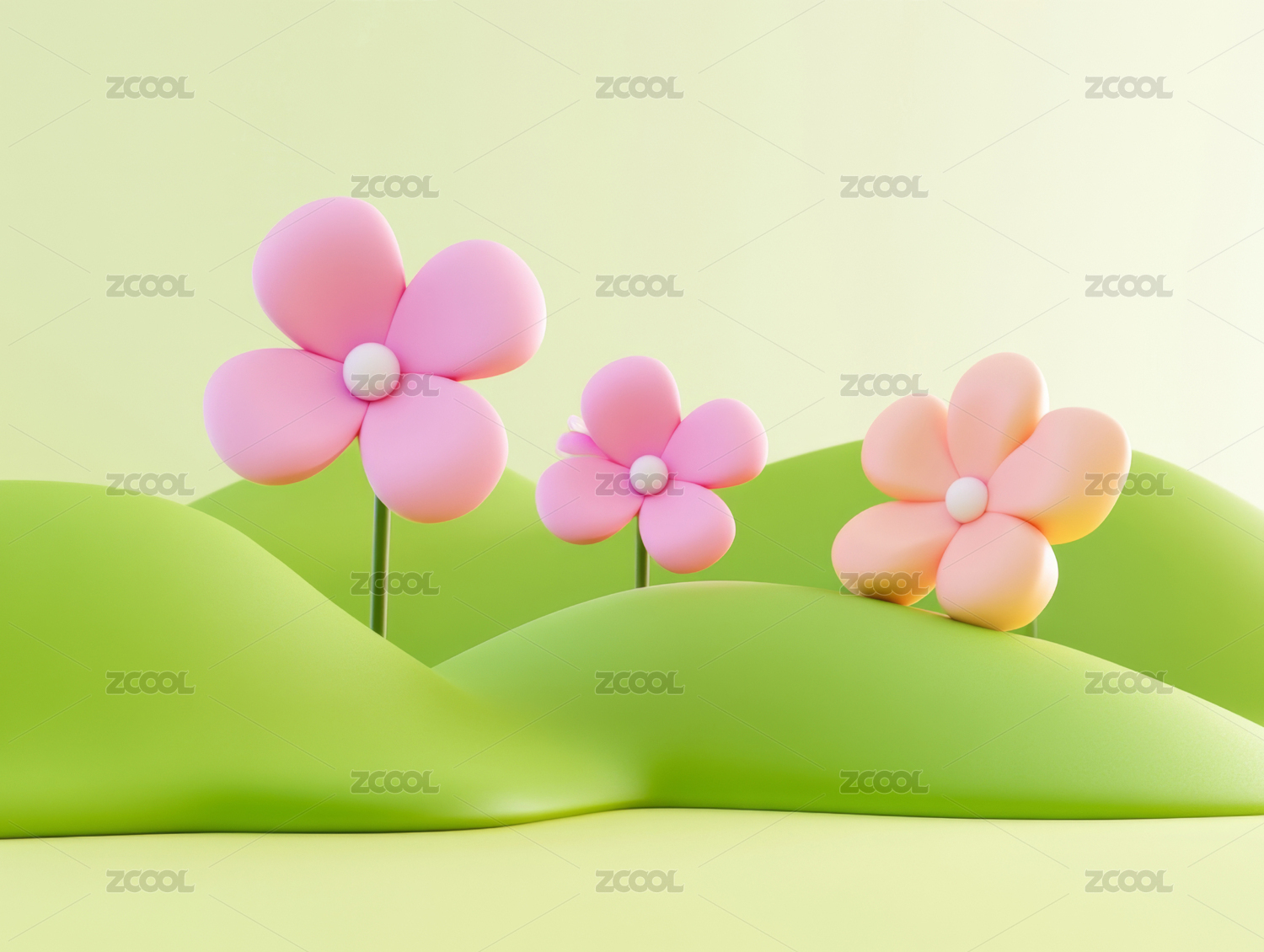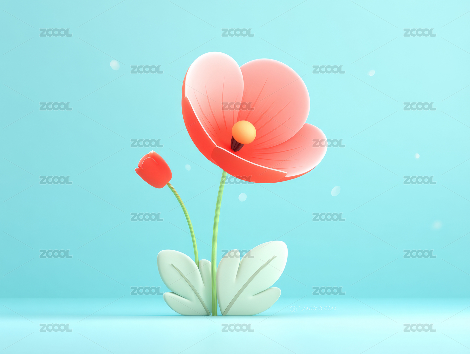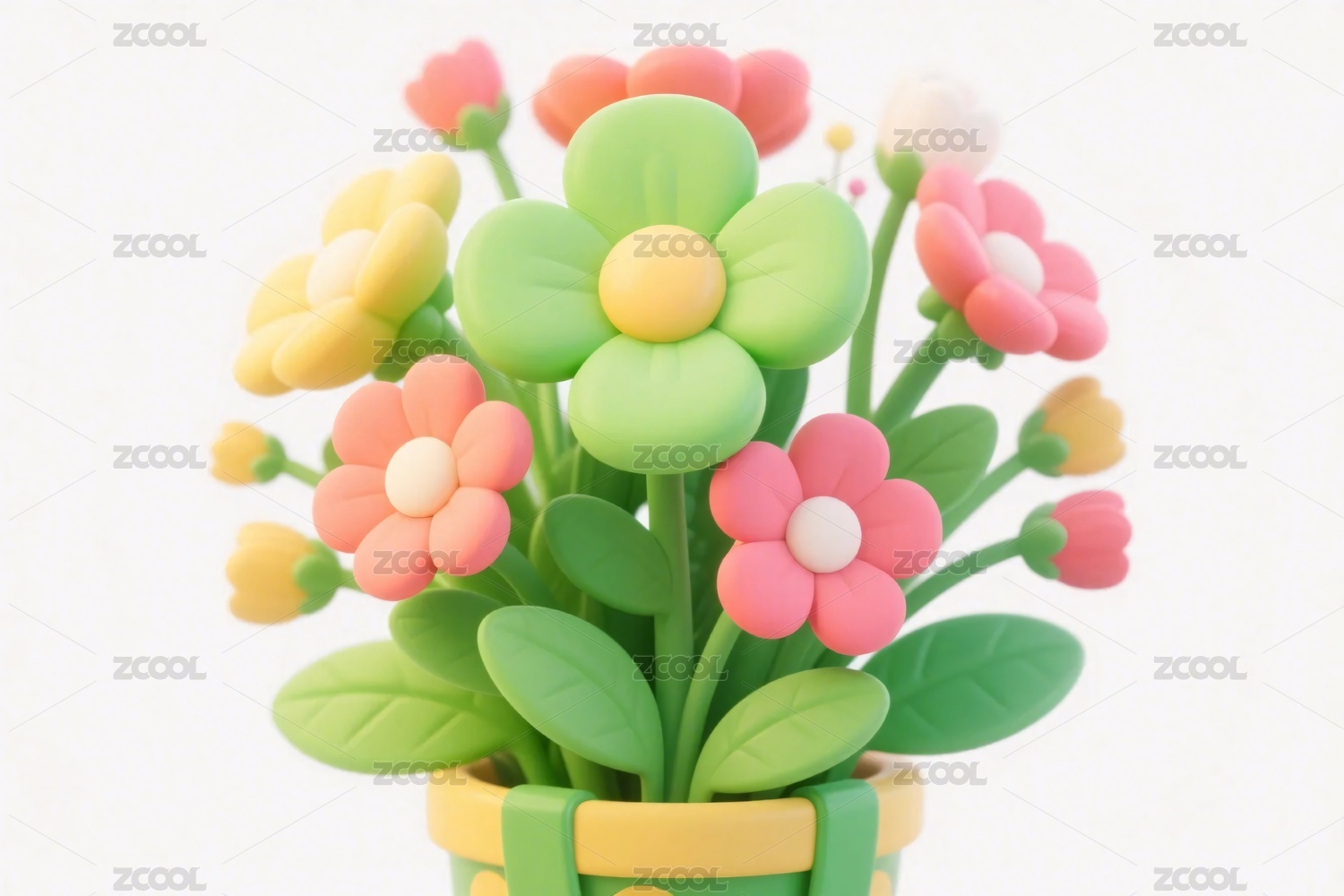 3d花卉工艺壁纸橙色绿色黄色花朵概念插图