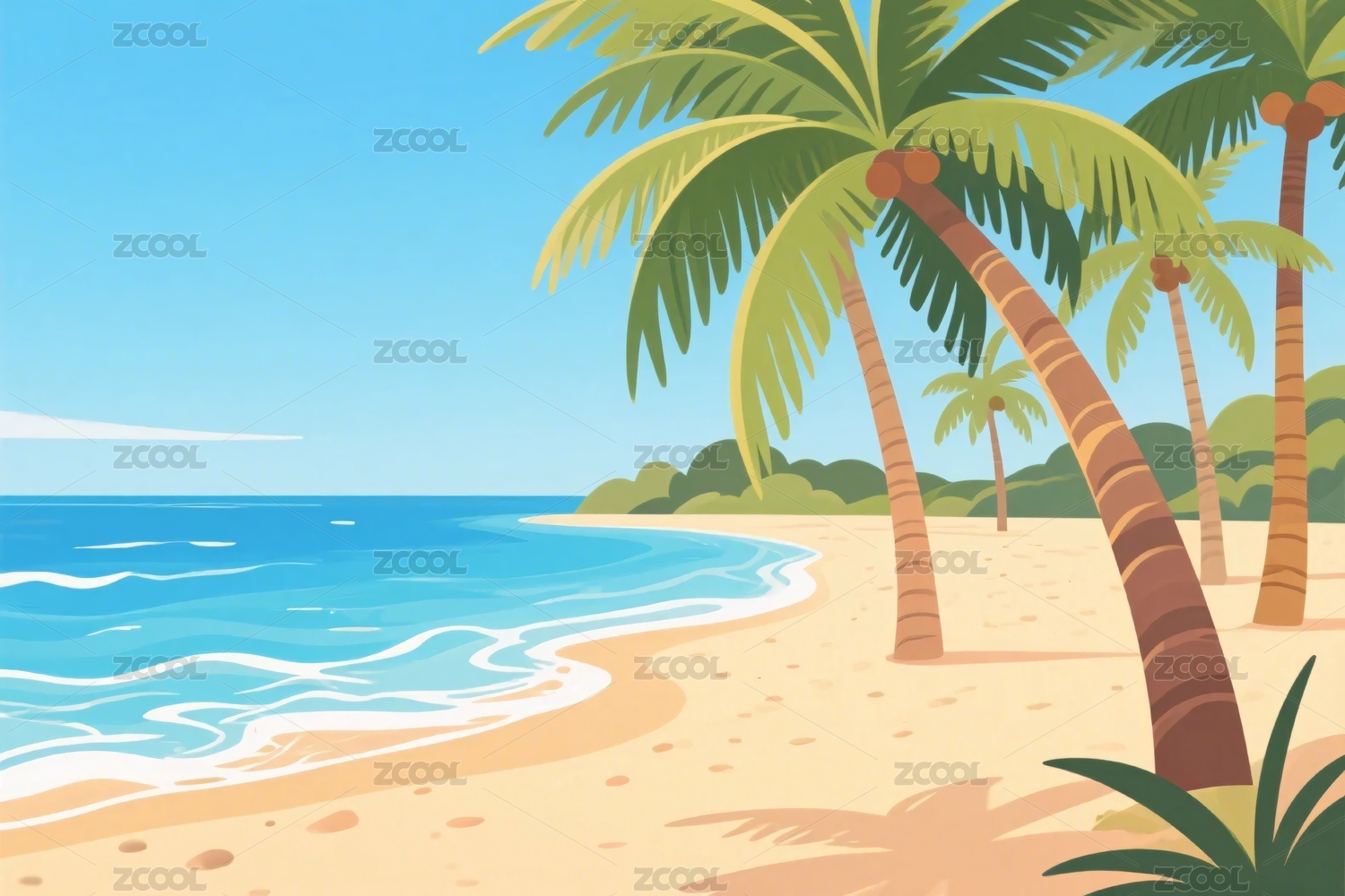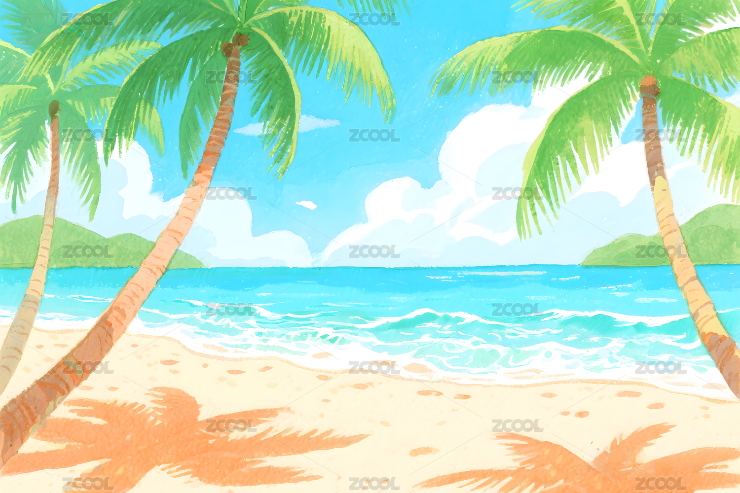 海滩椰林插画