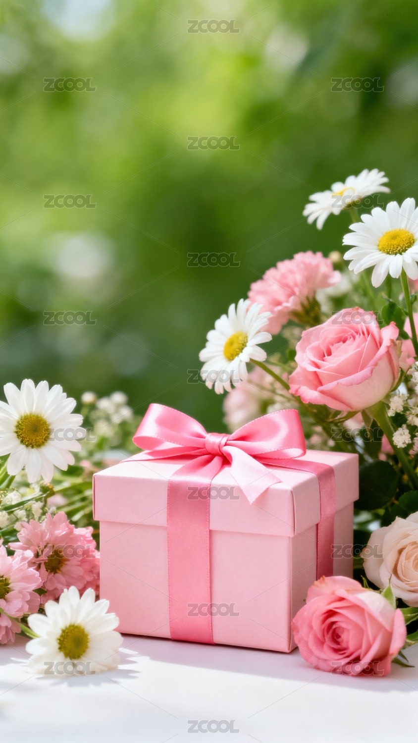 礼物,蝴蝶结,包装,丝带,装饰,背景,鲜花,粉色,白点,玫瑰