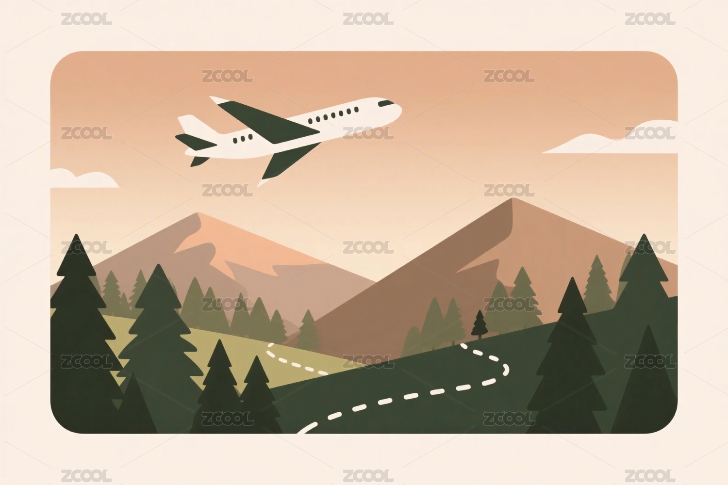 飞机,飞行,山脉,山峰,树木,卡通,插画,矢量,卡通风格,背景图