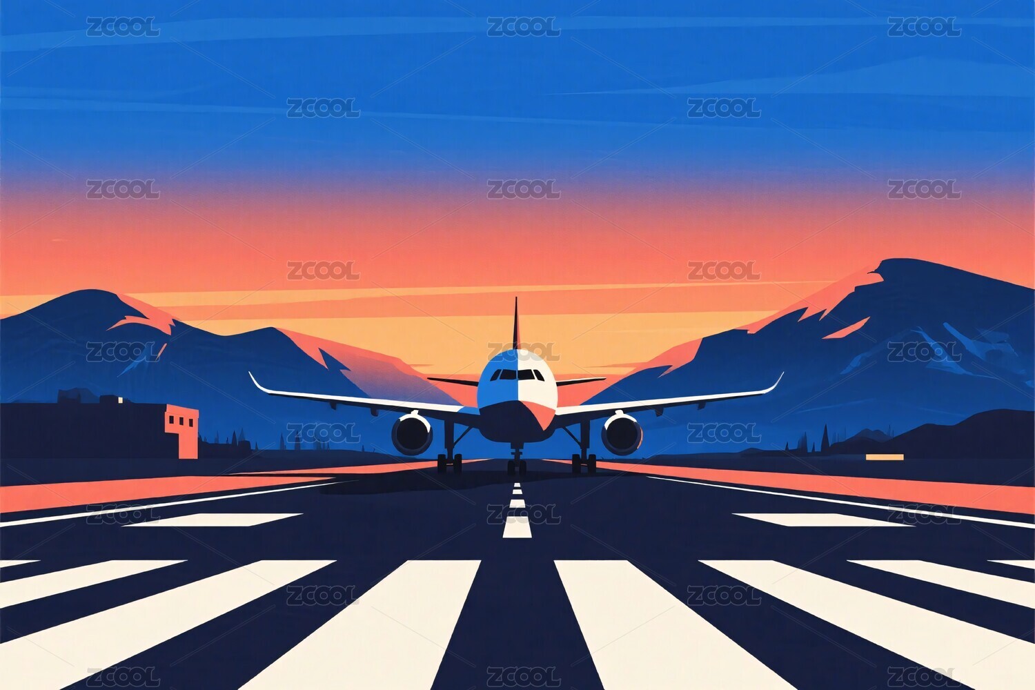 跑道上的飞机与壮丽山景