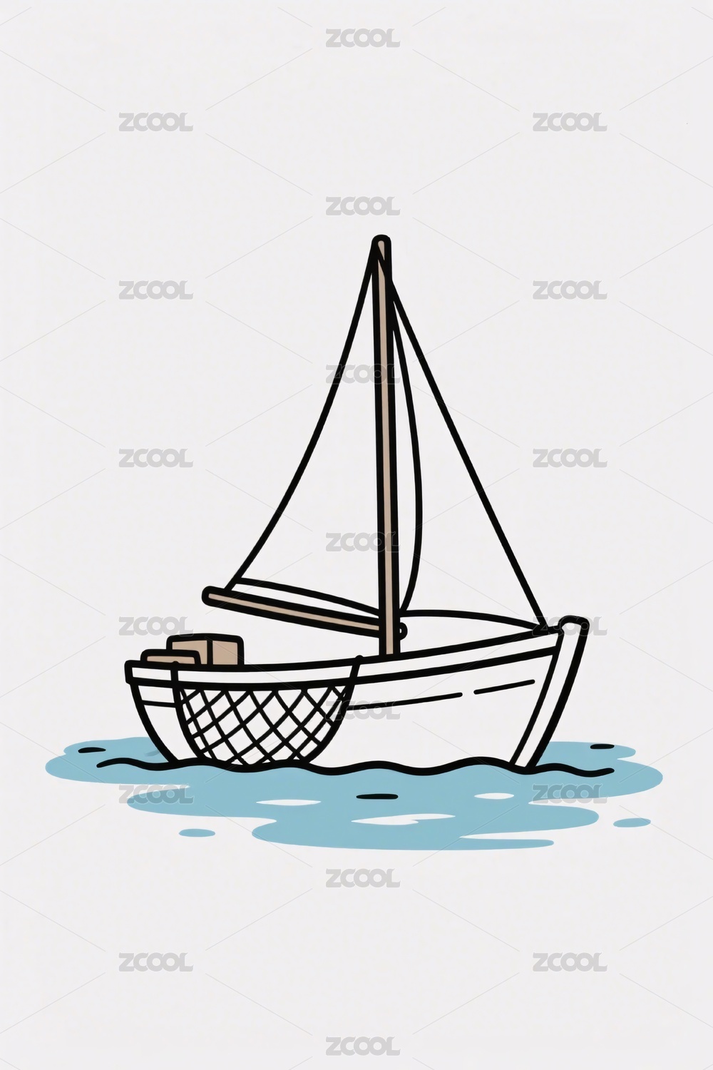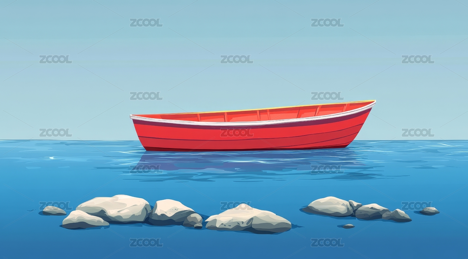 木船,水面,划桨,插画,矢量,卡通,小船,船只,自然,木质