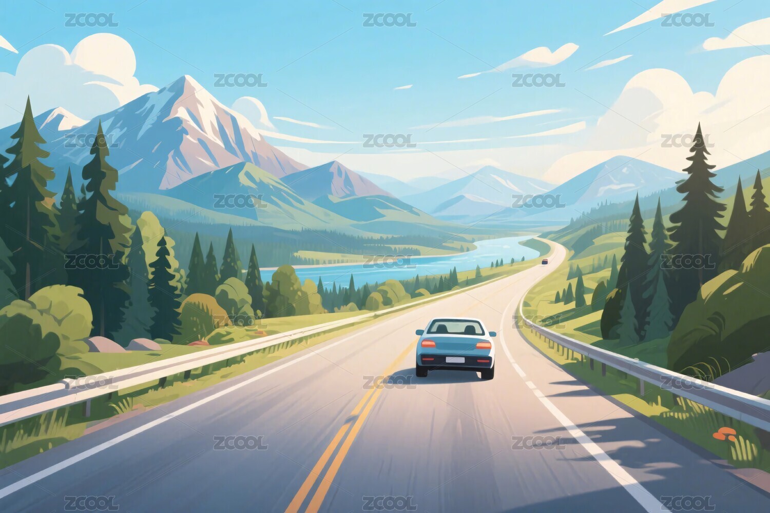 公路汽车风景插画