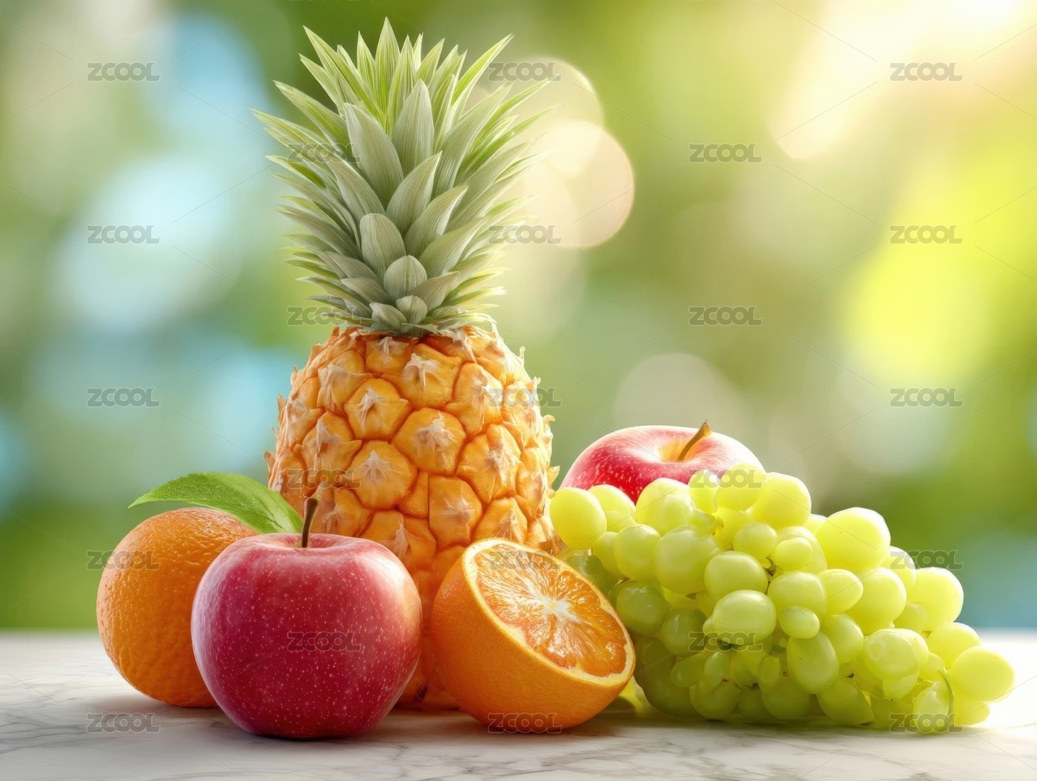 背景,水果,菠萝,葡萄,橙子,叶子,绿色,阳光,自然,苹果