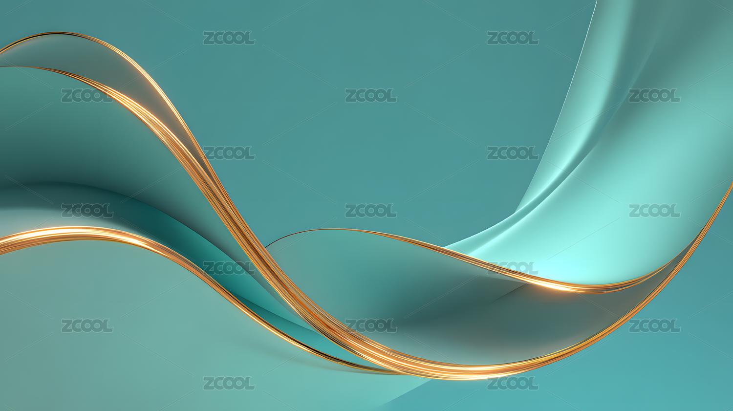 蓝金,曲线,装饰,艺术,图形,柔美,丝滑,质感,优雅,光影