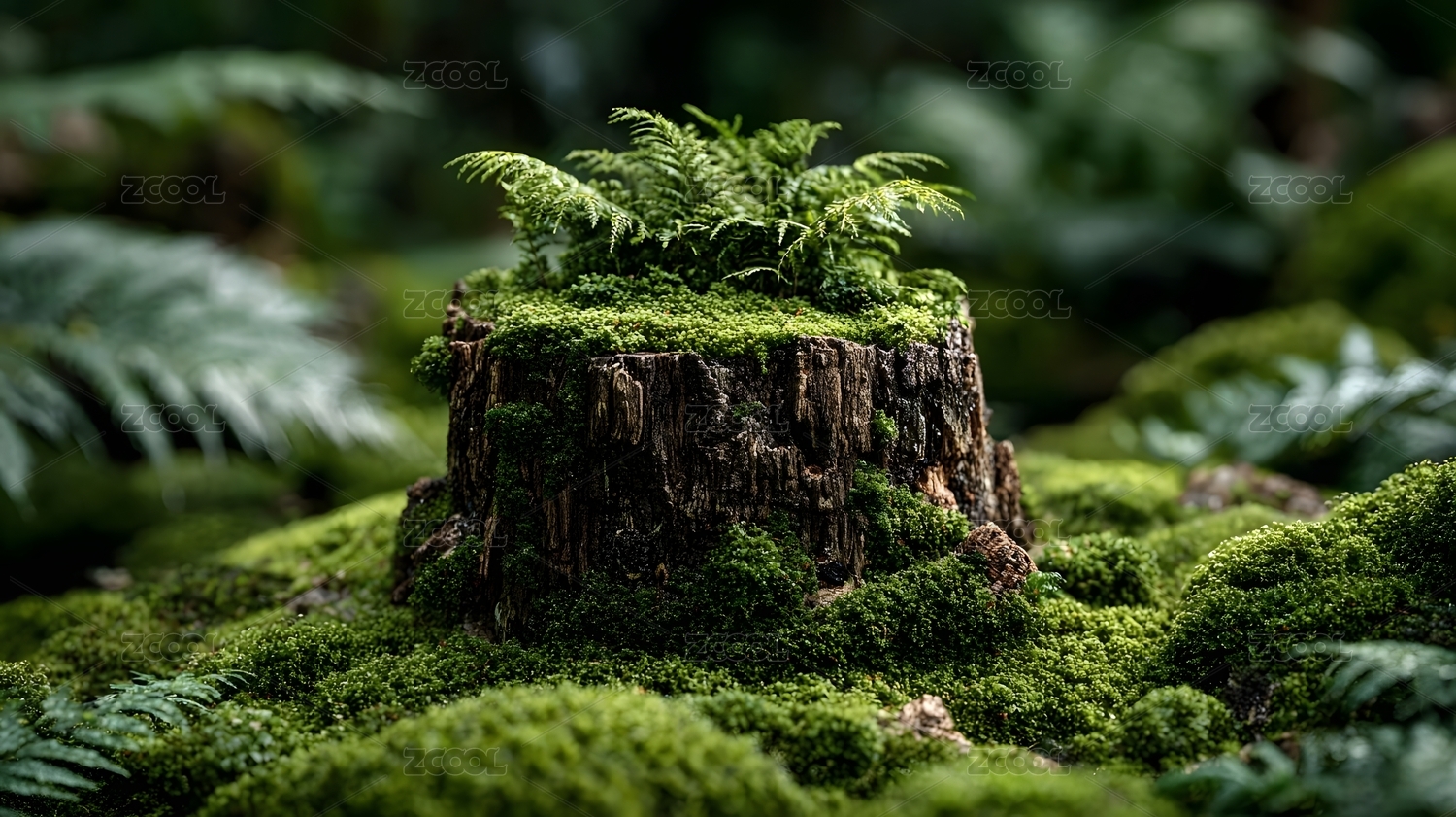 森林苔藓树桩自然景观