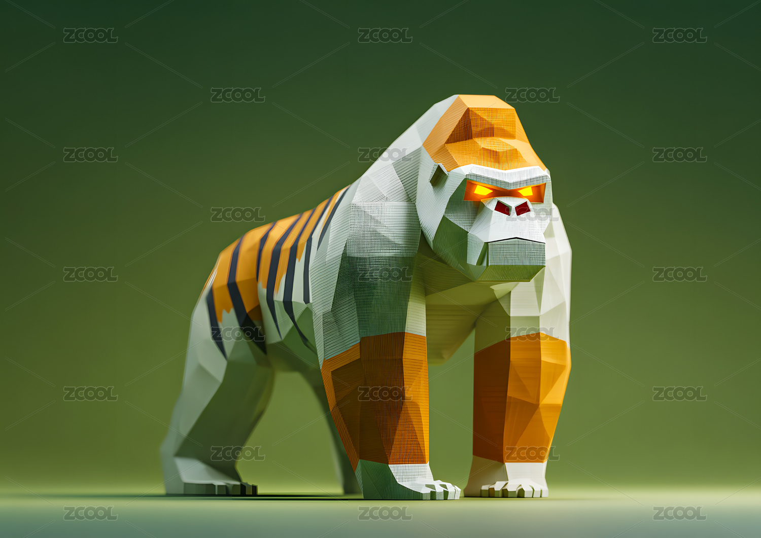 低面多边形糖果色鳄鱼玩具模型3D立体插画
