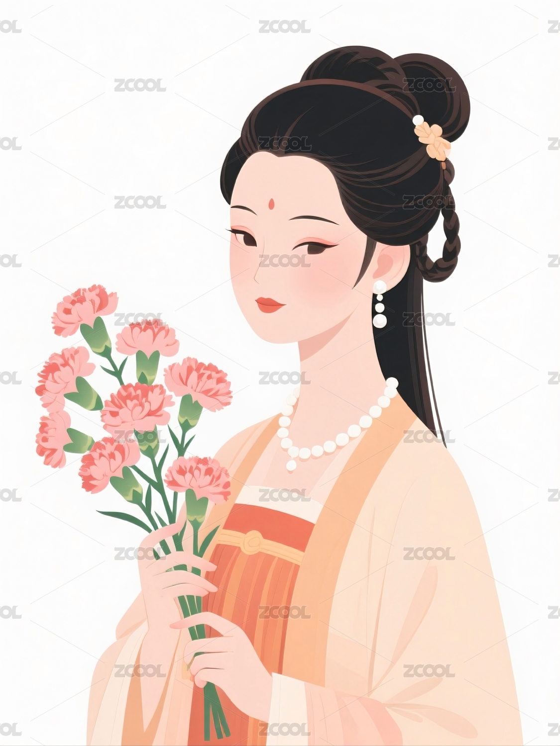 棕色,人物,白色,红色,枝干,鲜花,花朵,浅色,长发,珍珠