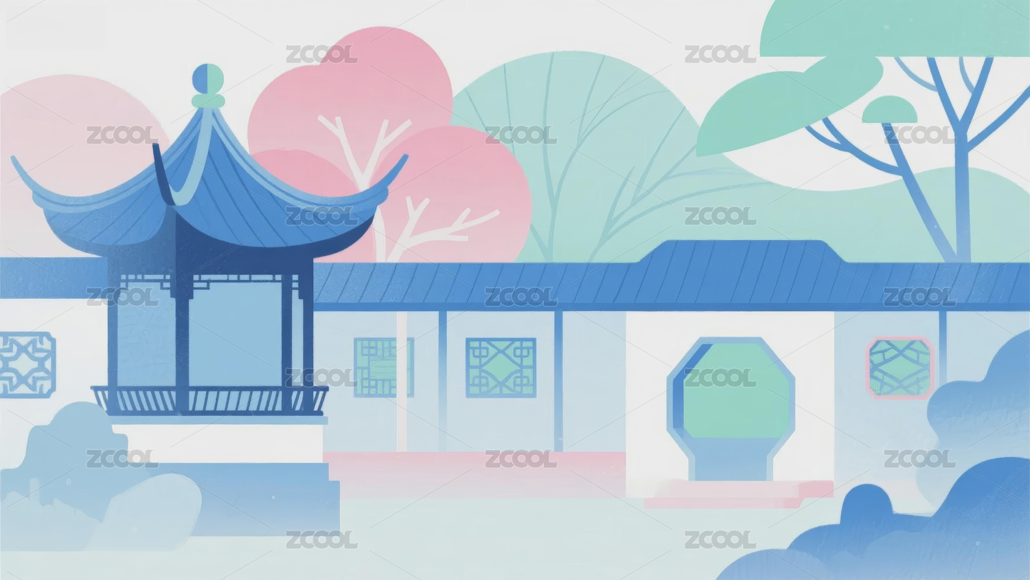 古建筑国潮插画背景