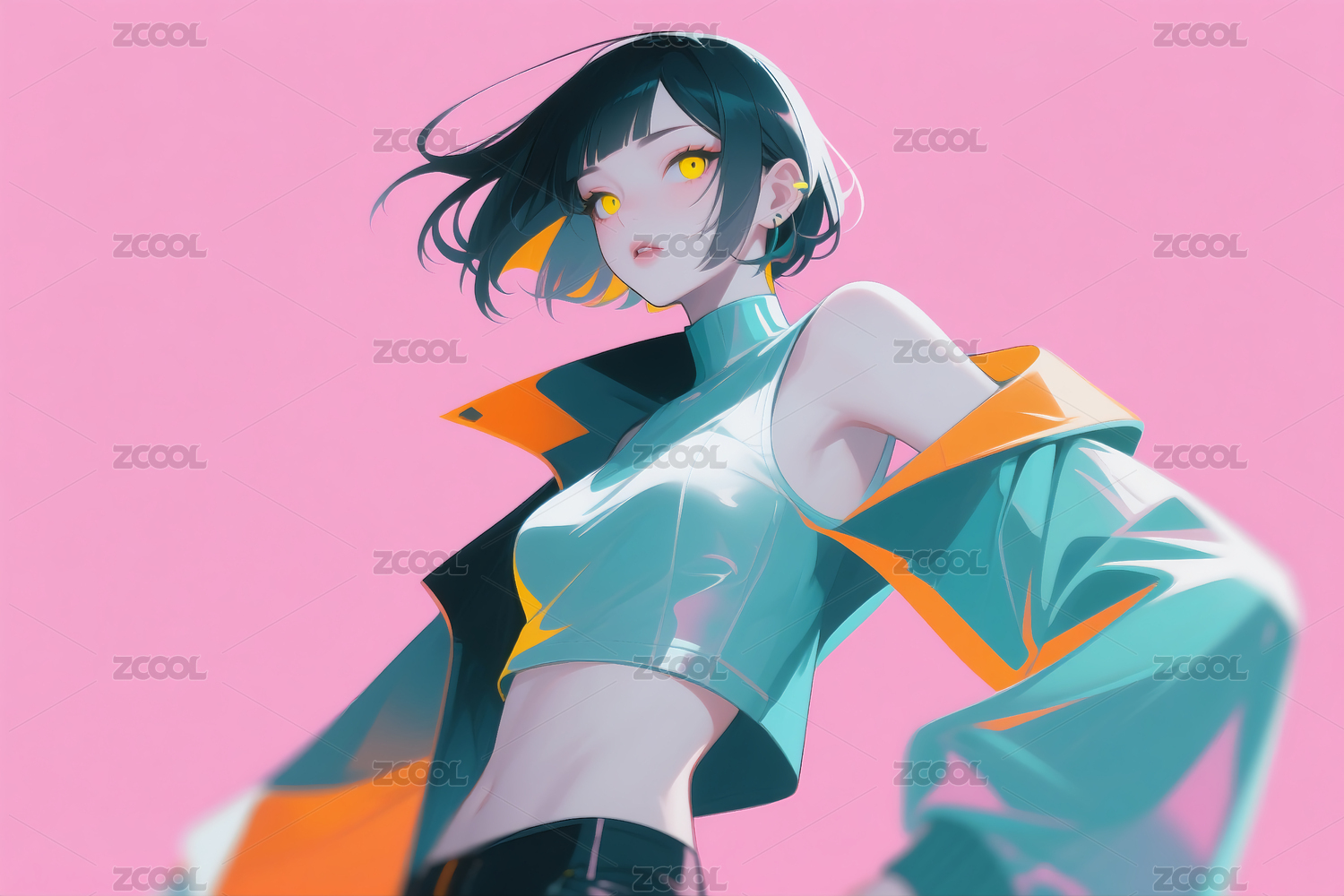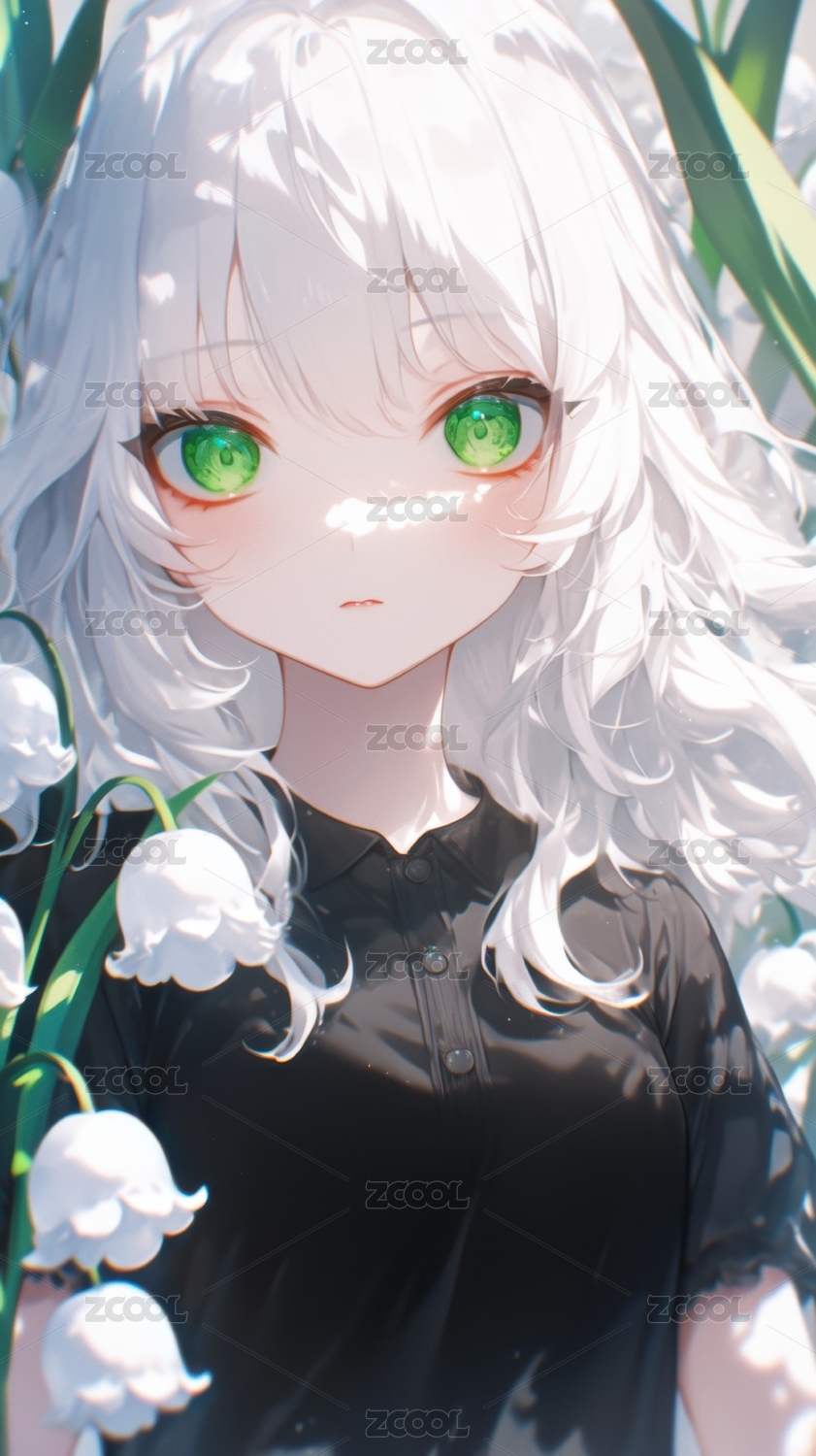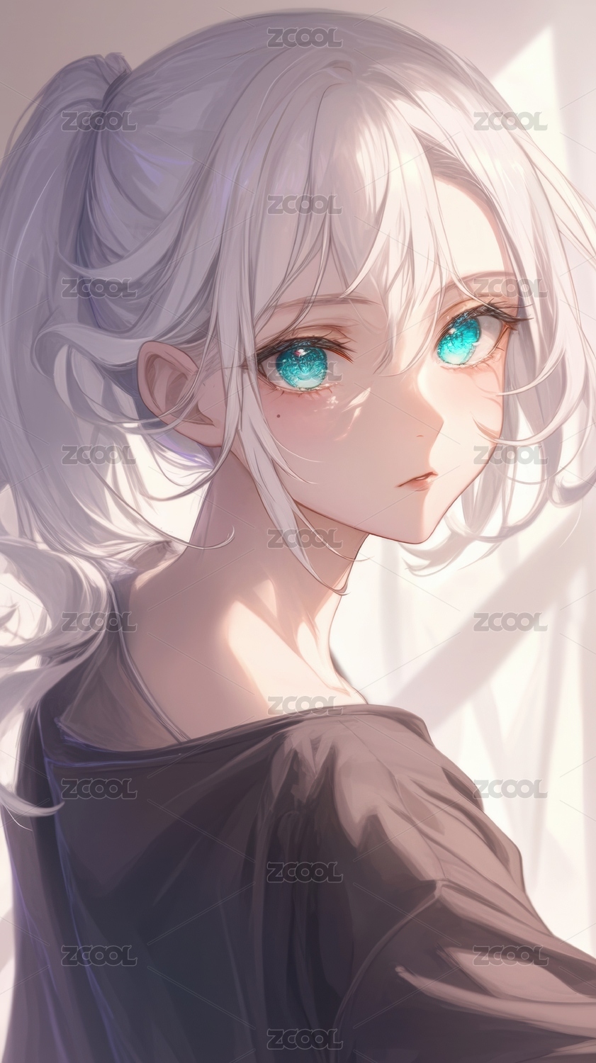 白发,插画,人物,动漫,女性,黑衣,短发,艺术,矢量,卡通