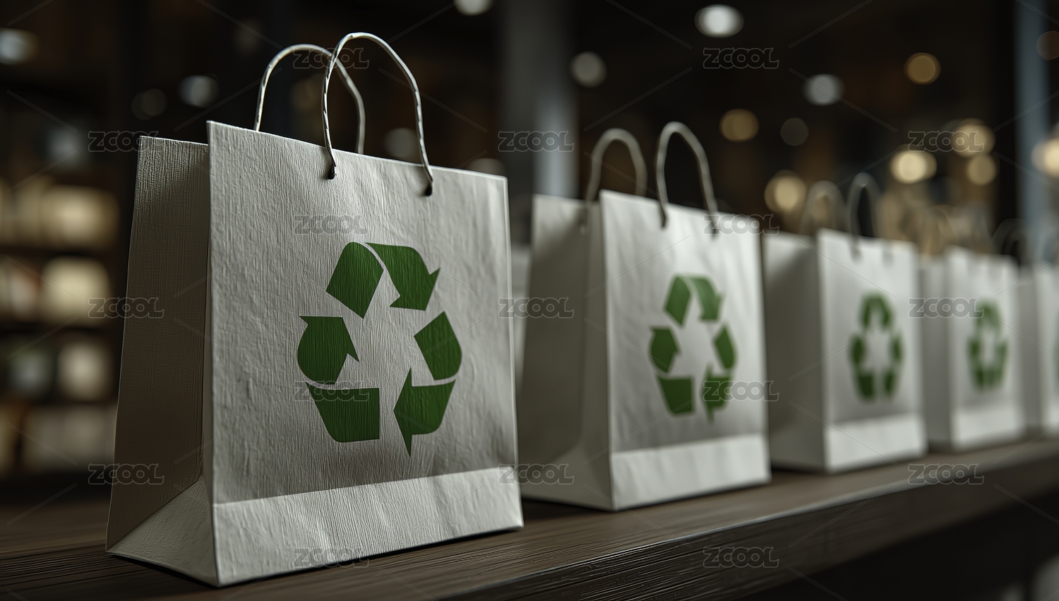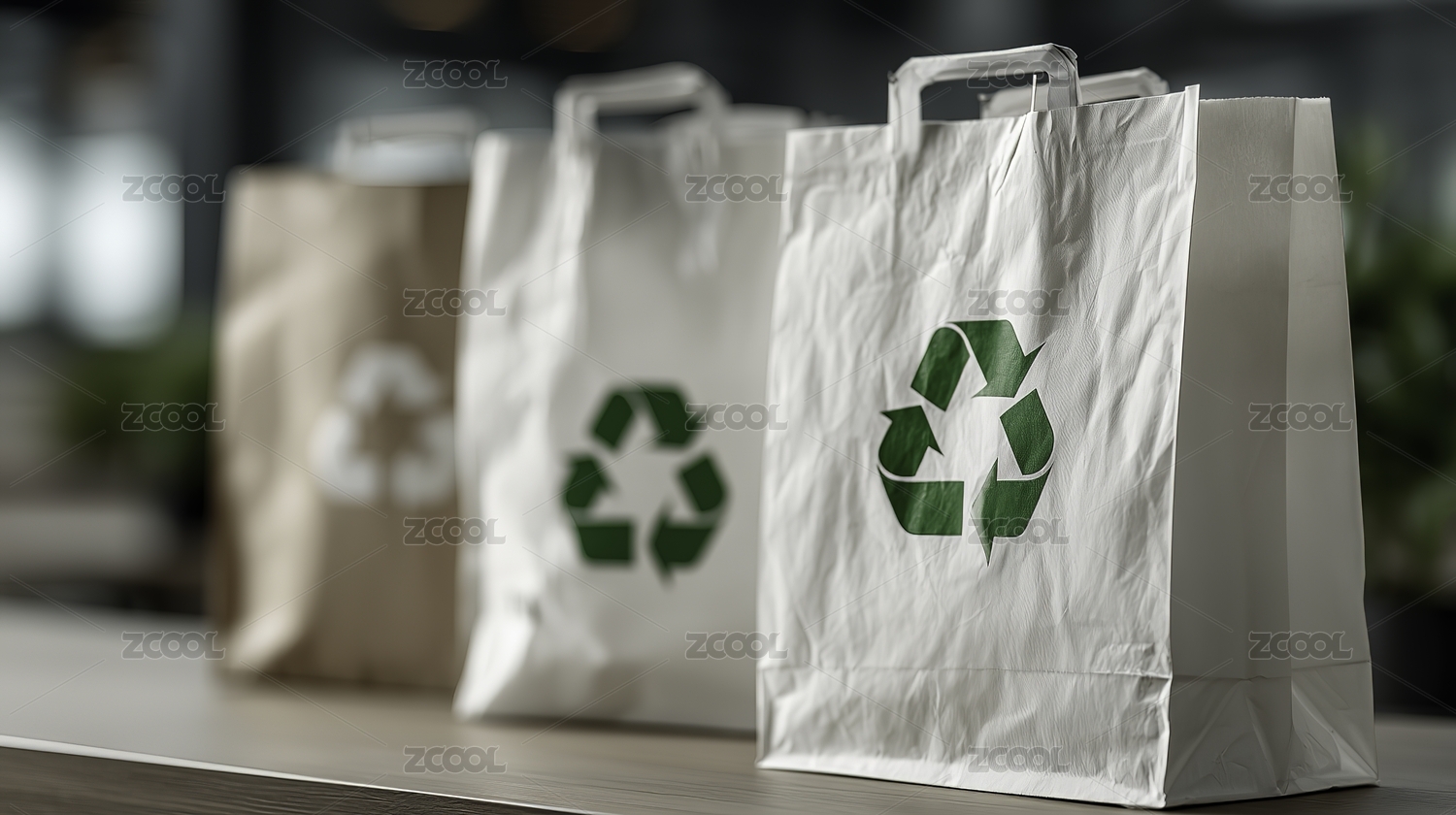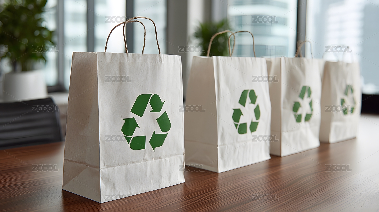 环保包装纸袋和绿色回收标志,低碳经济概念