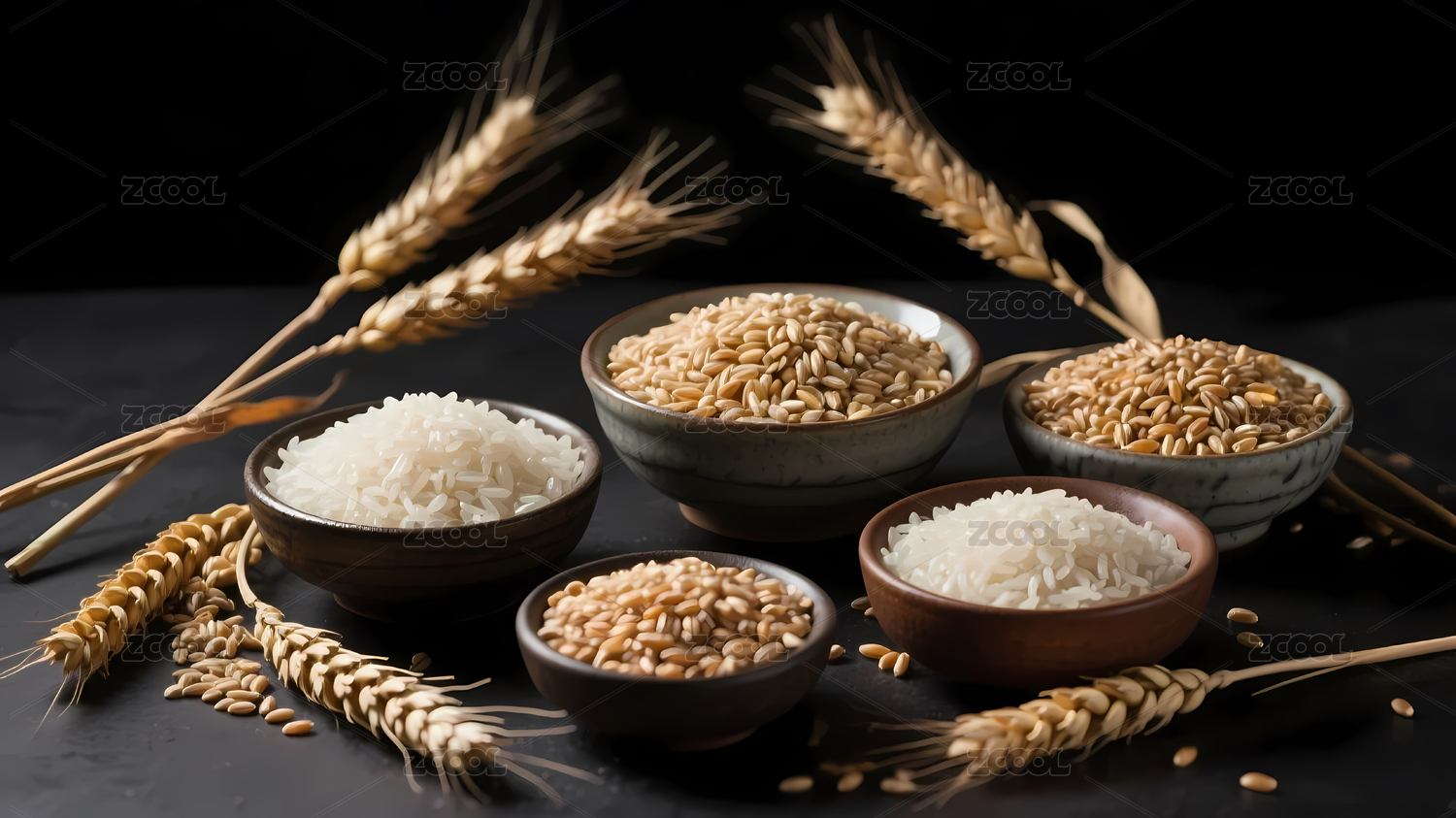 木碗谷物麦穗丰富色彩