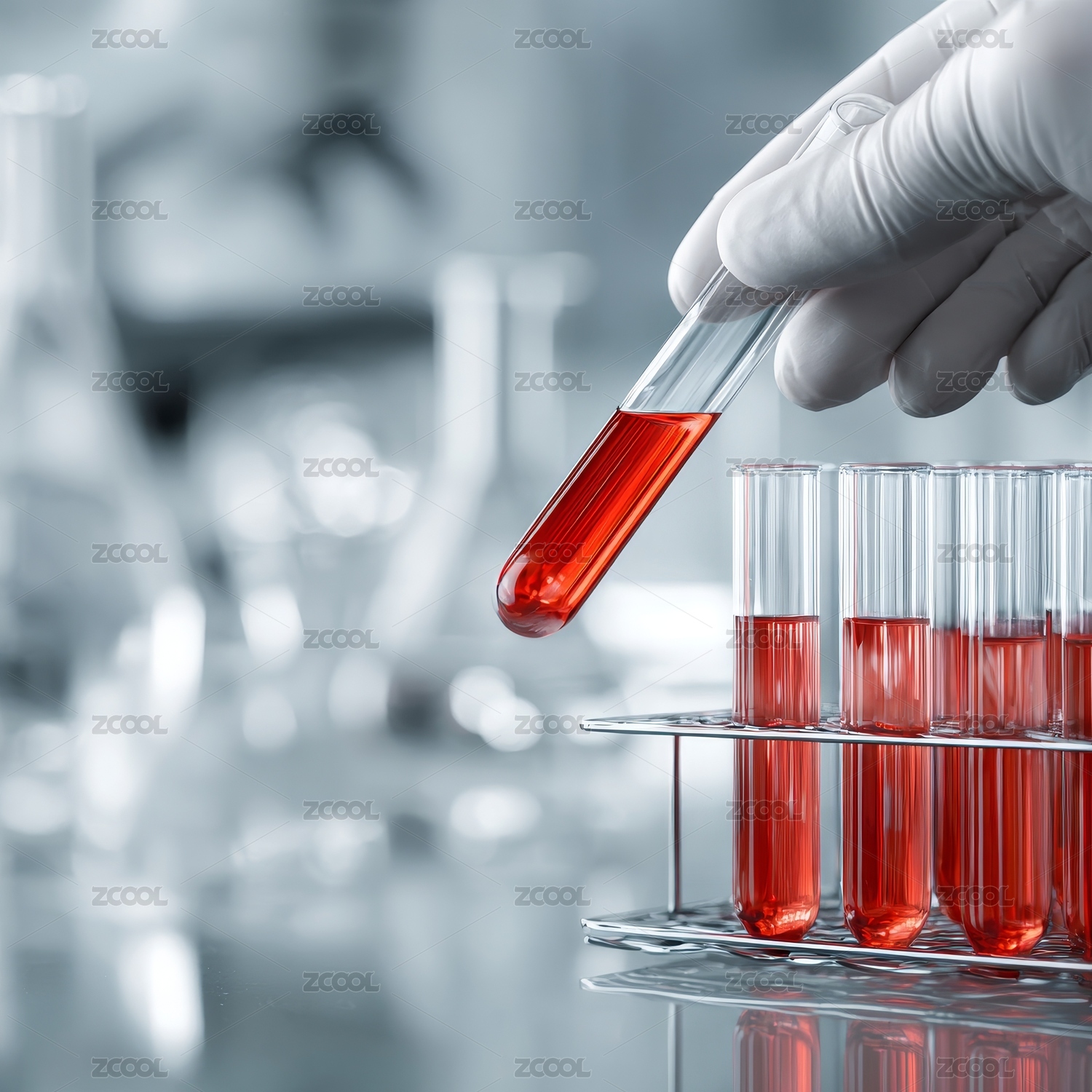 戴手套手持红色试管