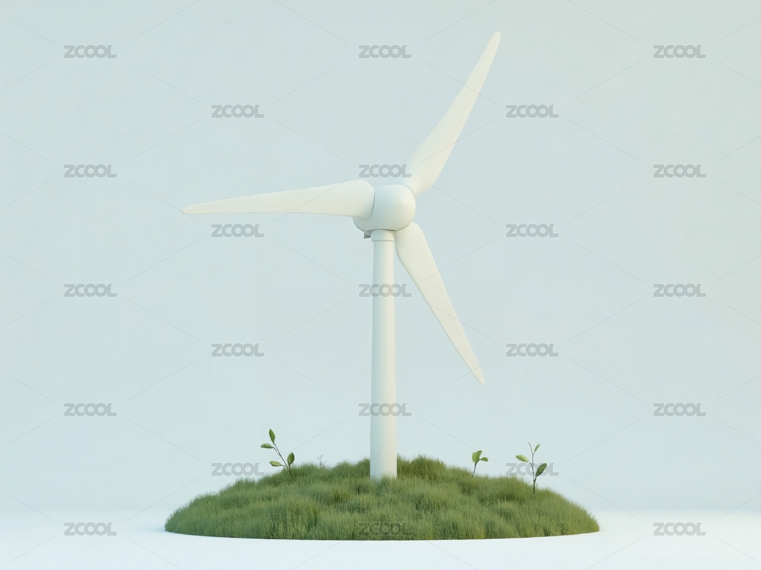 蓝天,白色,未来感,简约,清洁能源,环保,现代科技,风力,发电机,孤岛