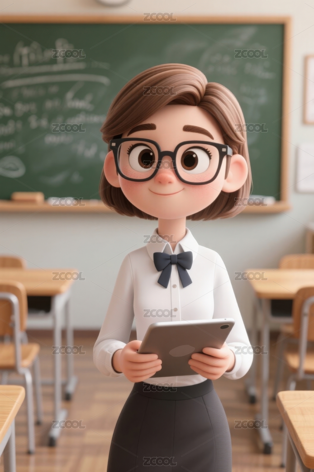 椅子,教师,教室,黑板,讲台,学生,眼镜,粉笔,黑板擦,短发