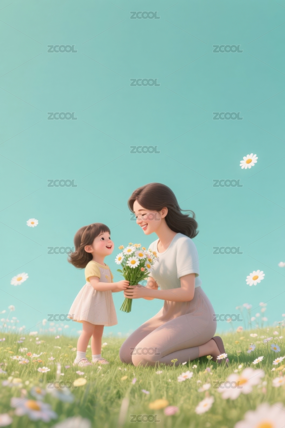 可爱,微笑,短裙,绿色,草地,花,天空,花朵,笑脸,树木
