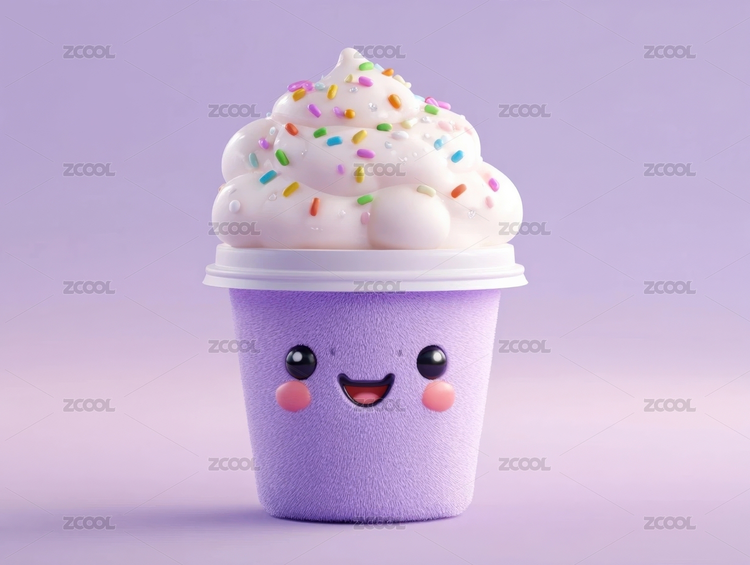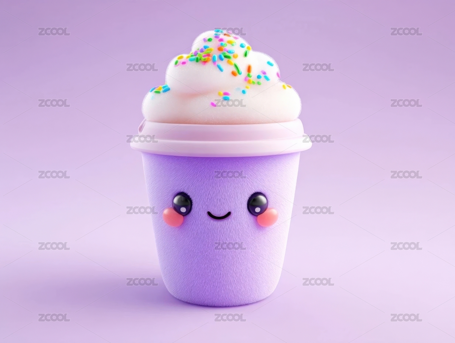 毛绒,白色,卡通,可爱,紫色,甜点,奶油,装饰,冰淇淋,杯子