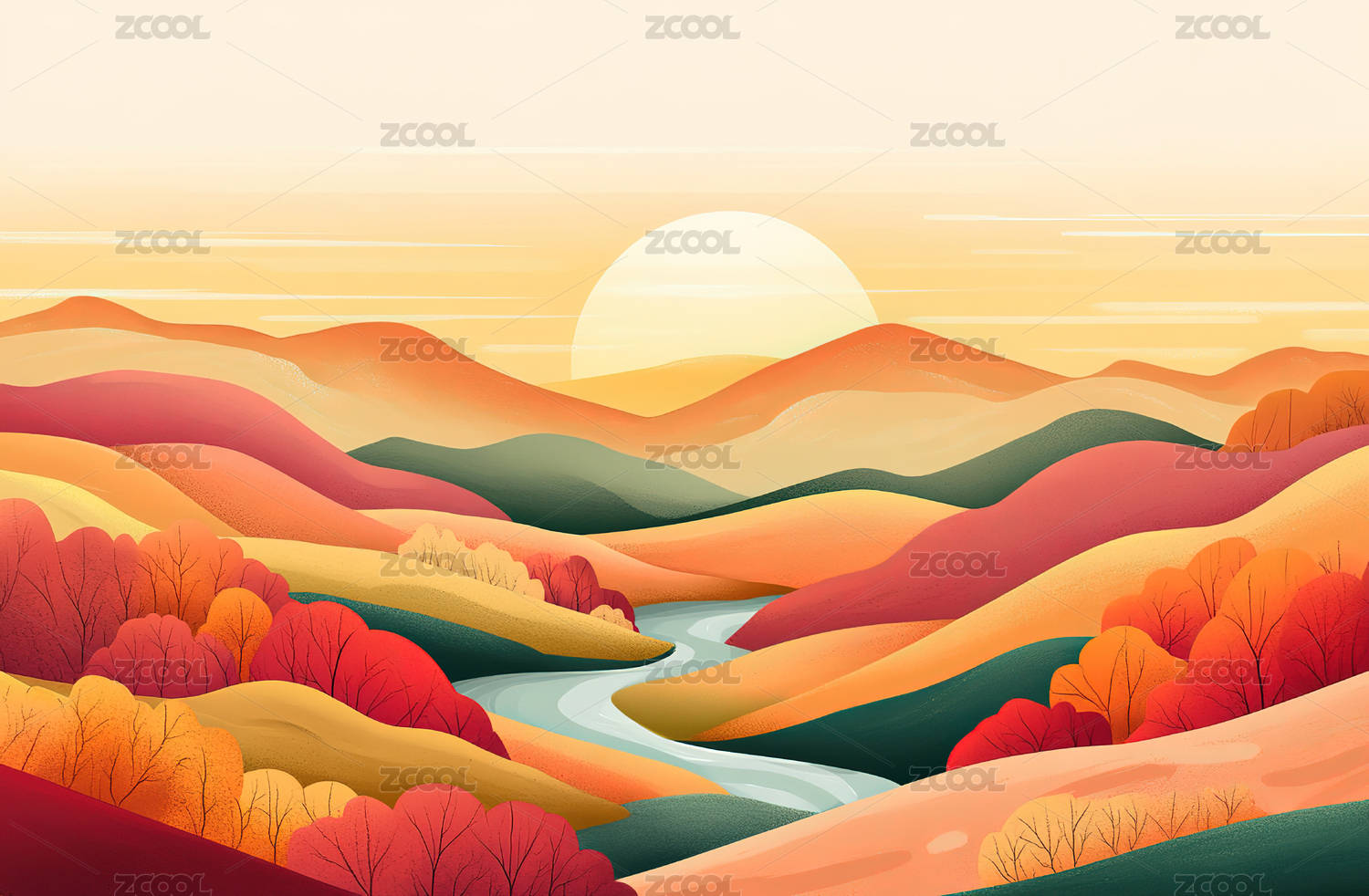 立秋节气户外旅行自然风景处暑卡通唯美插画