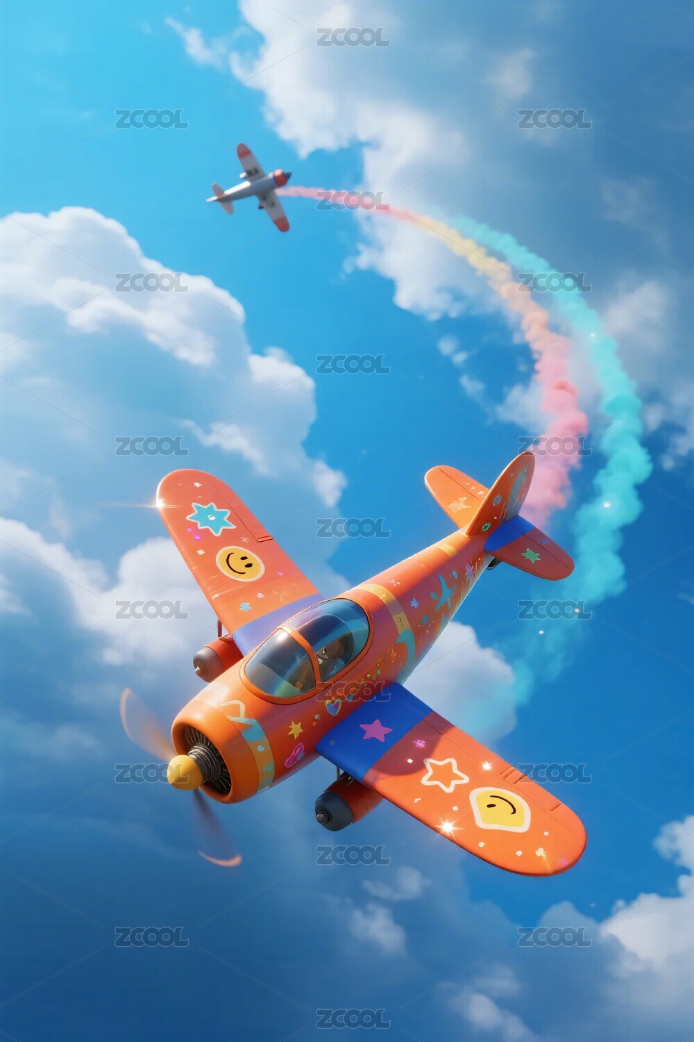 彩色小飞机翱翔蓝天