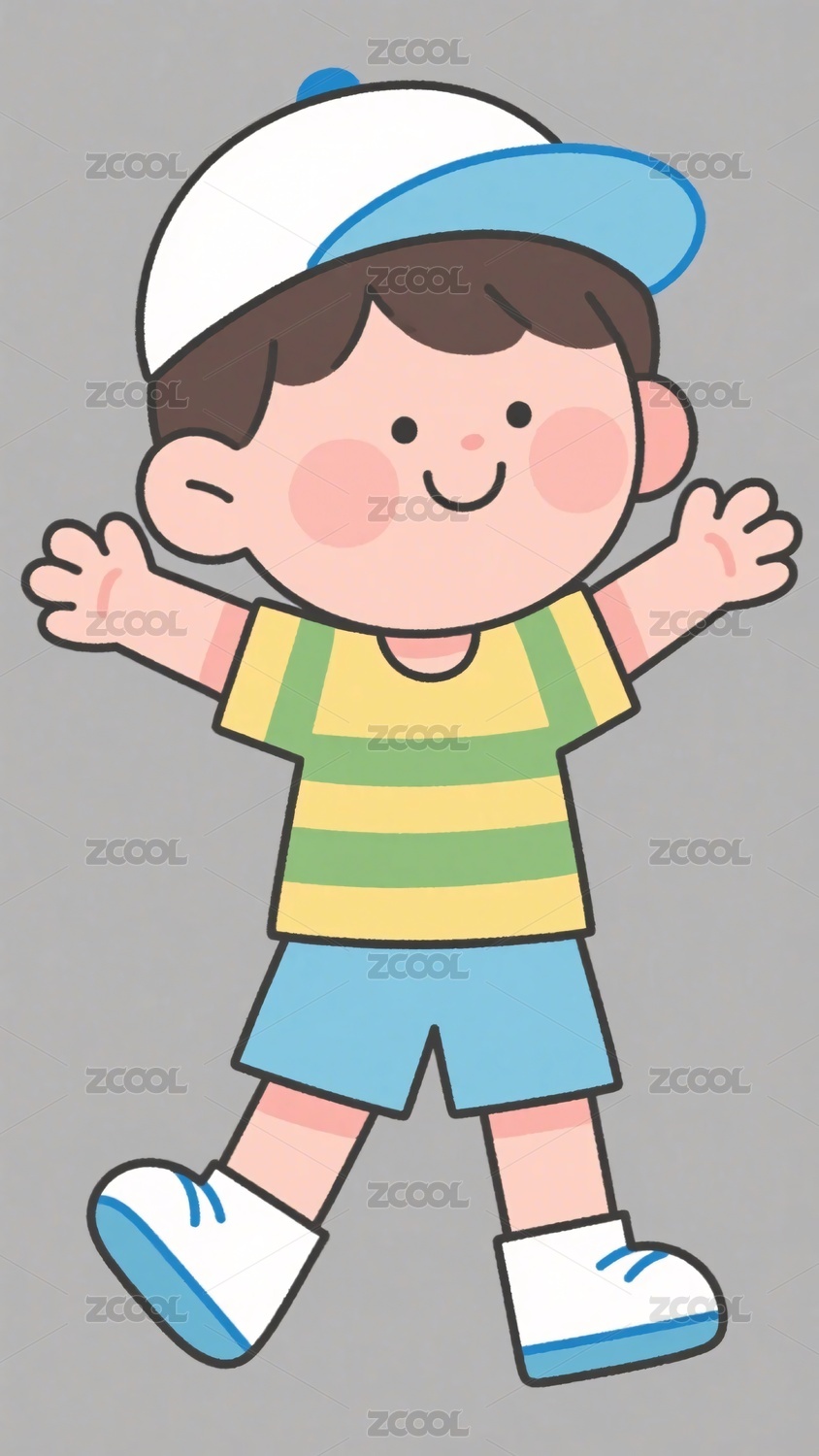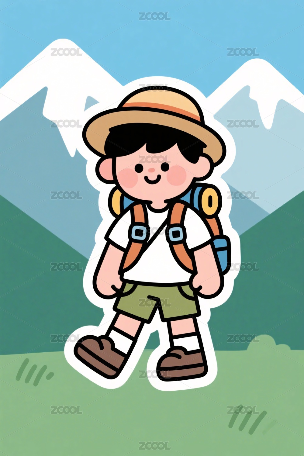 卡通,探险,人物,帽子,背包,短裤,鞋子,童趣,插画,矢量