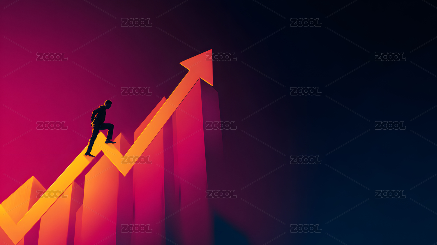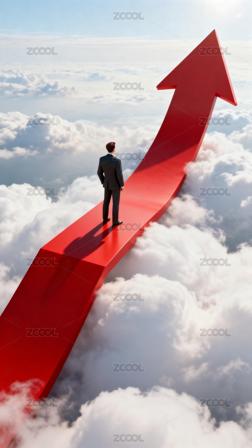 男人顺势走在上升箭头上