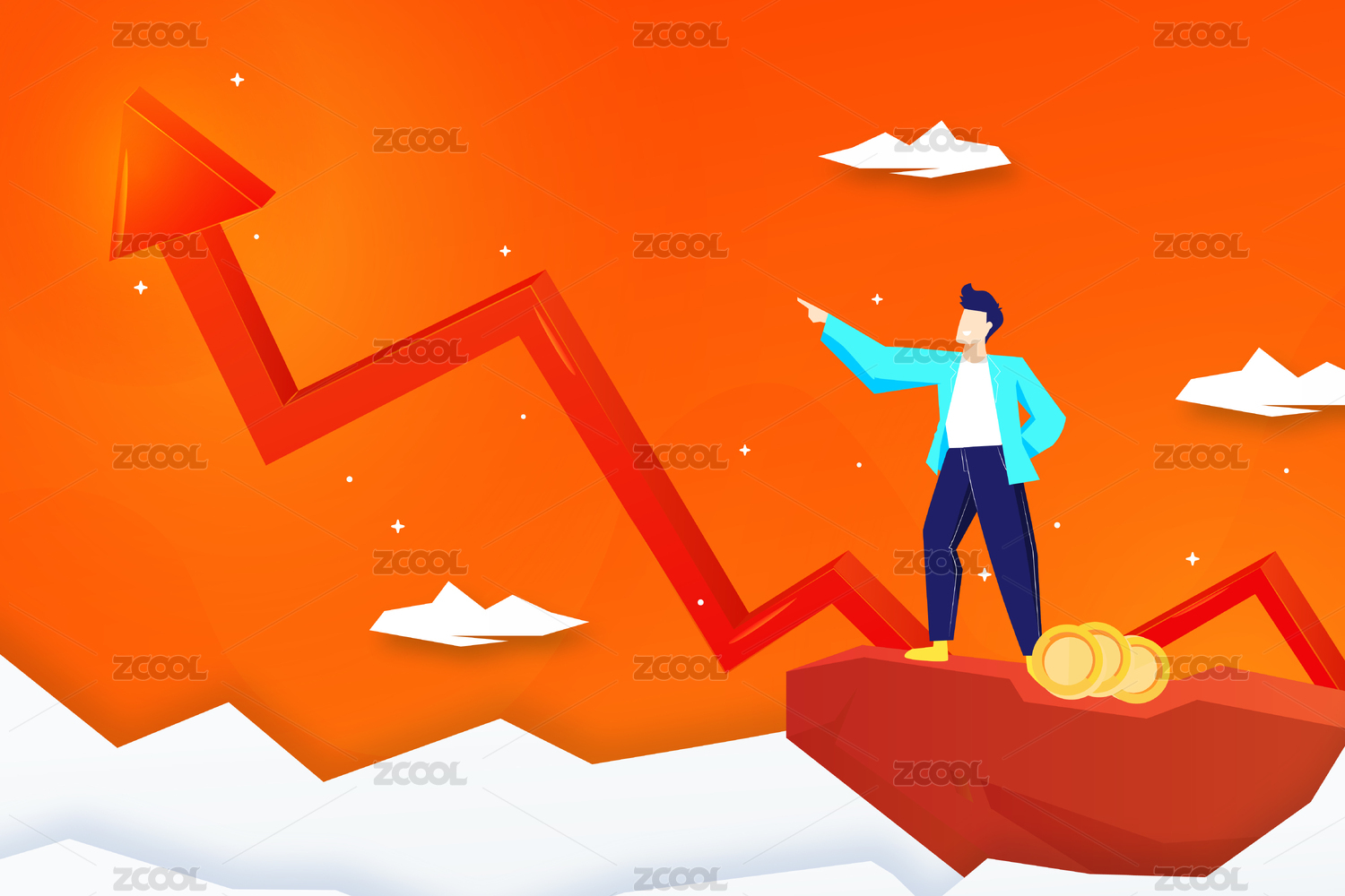 商务人士彩色化经济增长场景