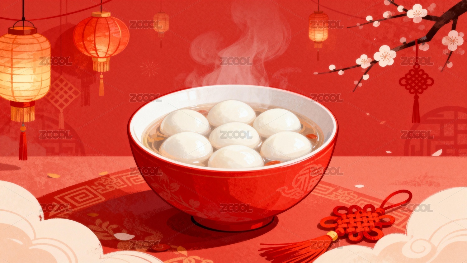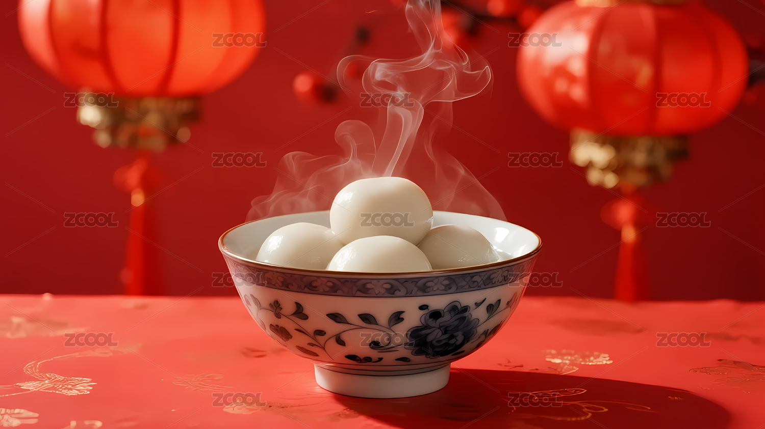 放在红色背景上的一碗亚洲中国传统节日食物汤圆