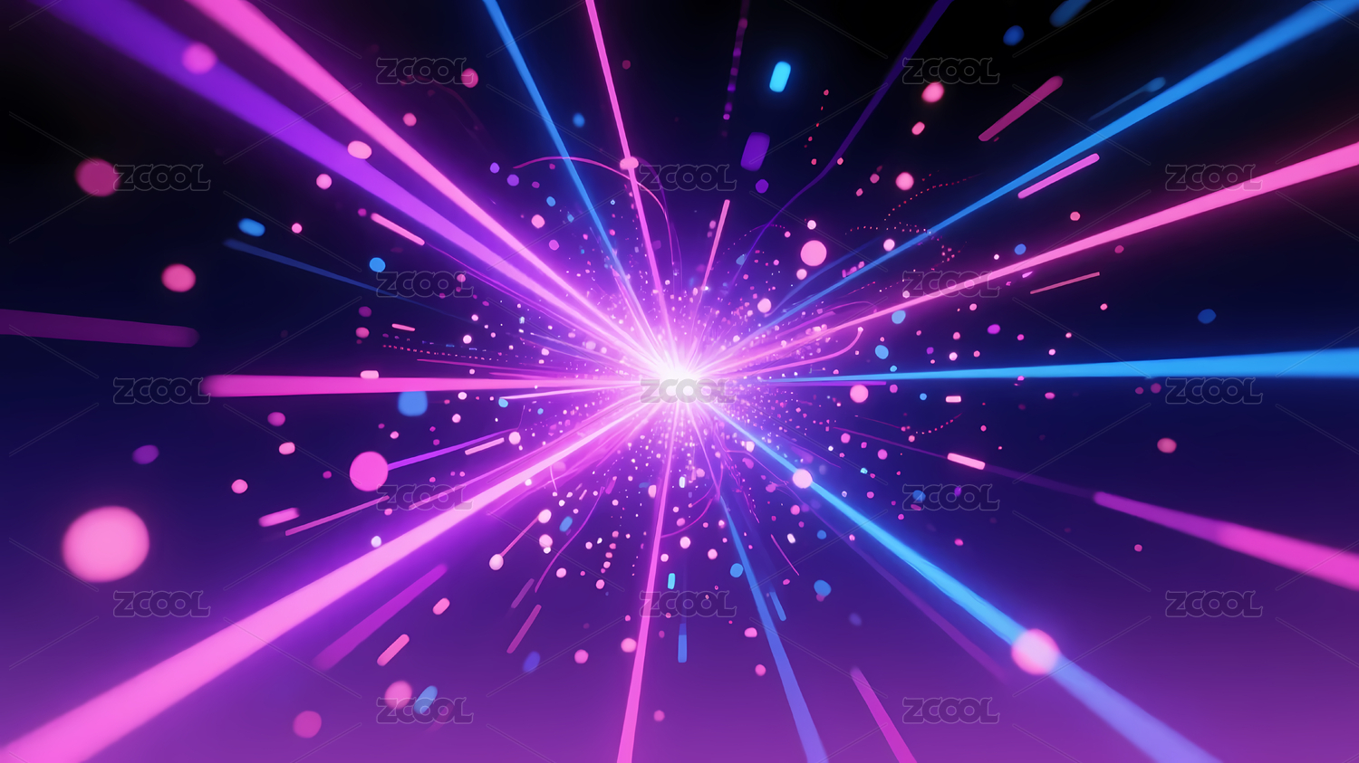 黑色背景粉紫放射光束