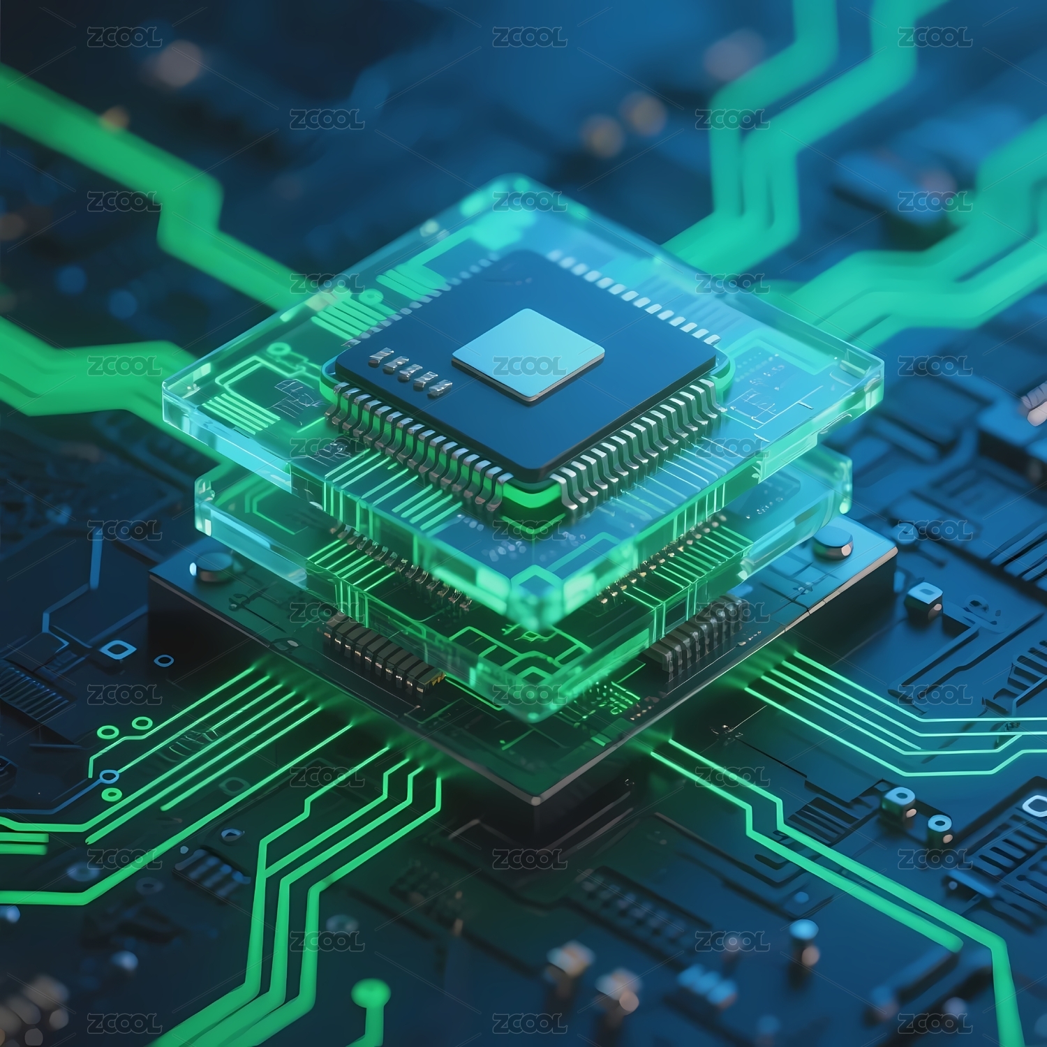 叠层芯片与电路板的科技影像