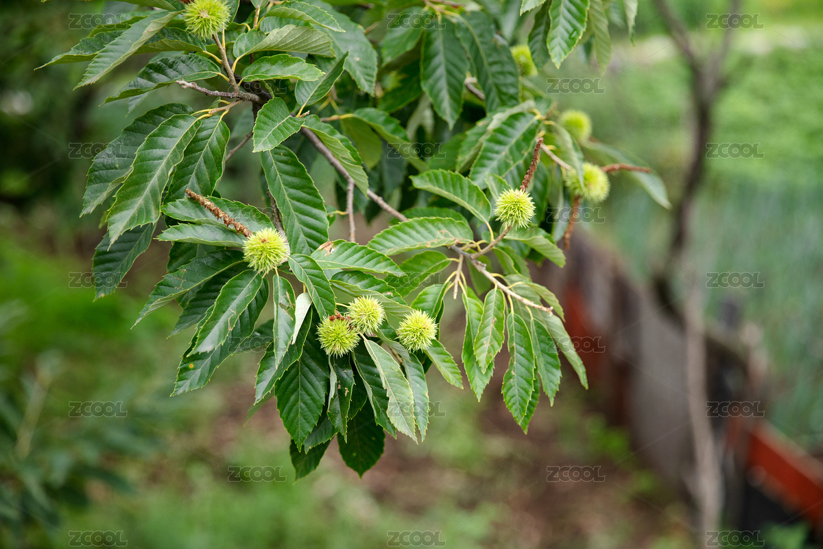 板栗,果实,食物,未成熟,刺球,树枝,枝头,板栗树,种植,植物