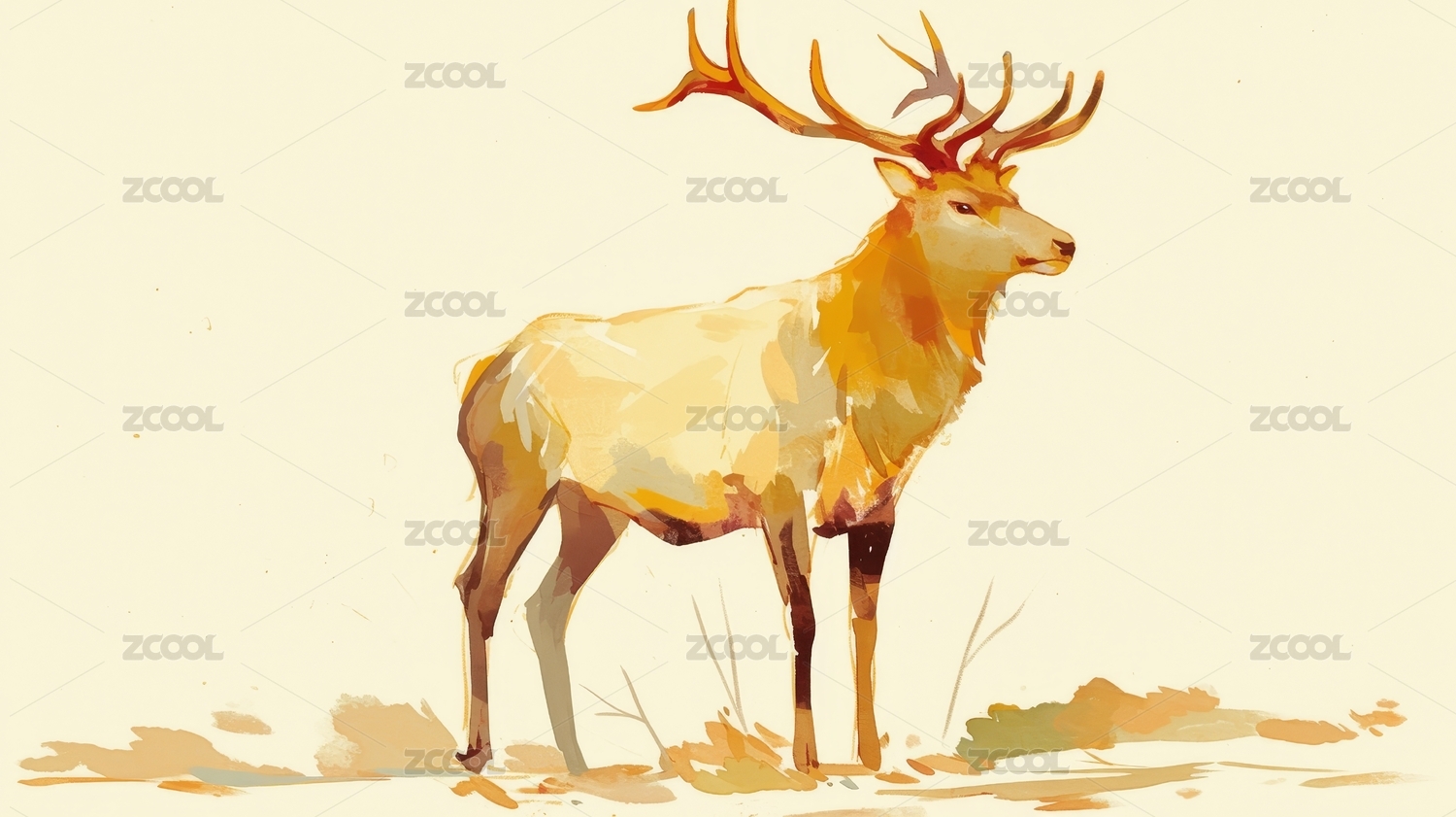插画,自然,野生,动物,户外,公共,彩绘鹿,静卧,艺术,创作