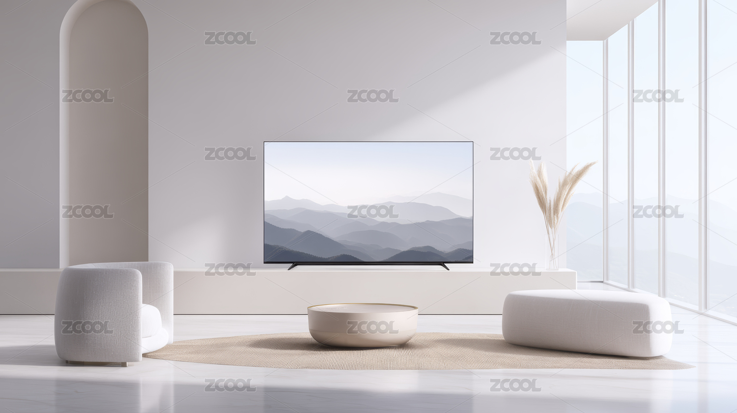 极简客厅中的山景电视