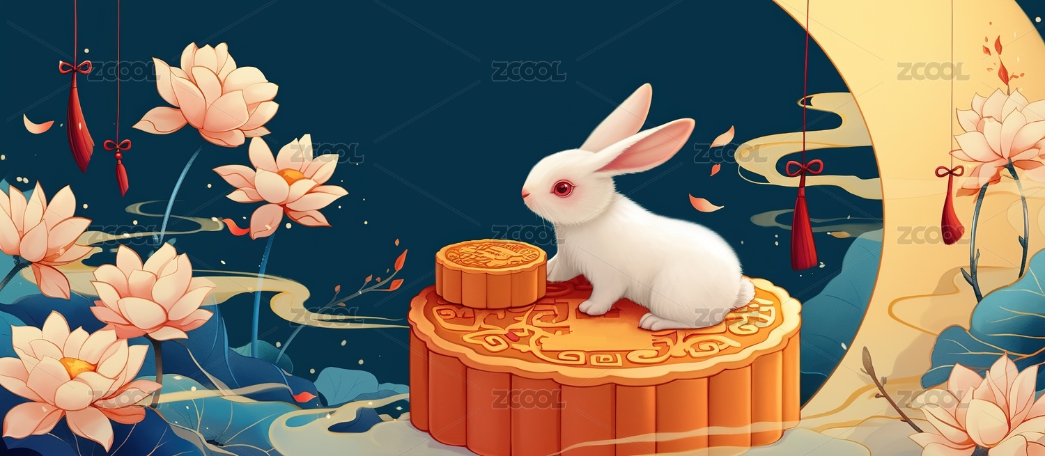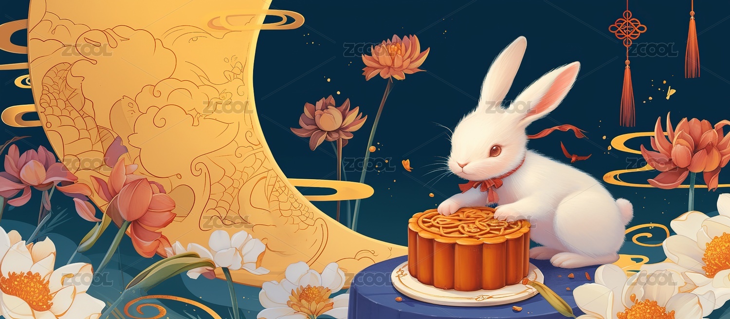 玉兔,节日,兔子,月亮,传统,中秋节,团圆,中国风,插画,庆祝