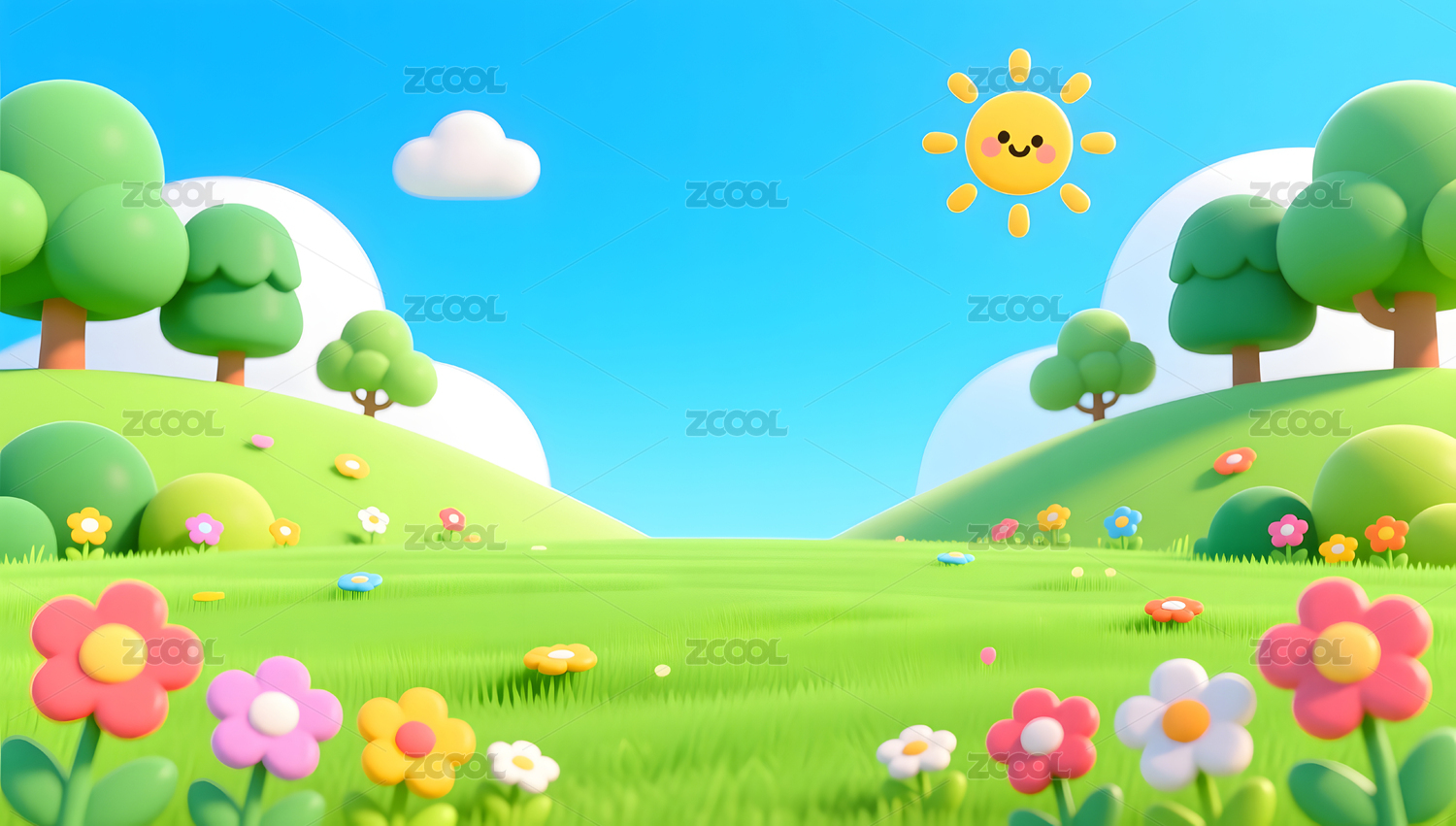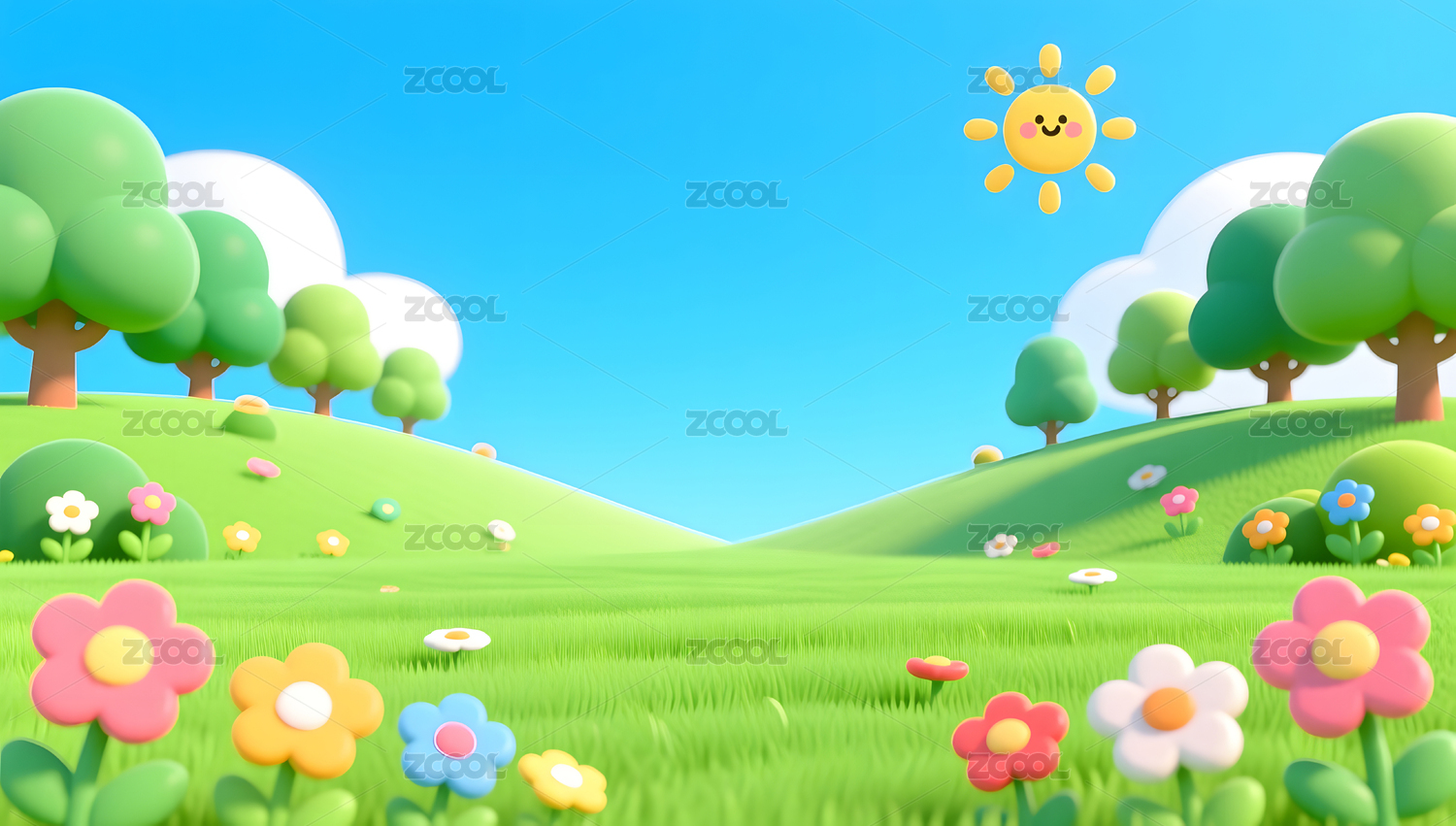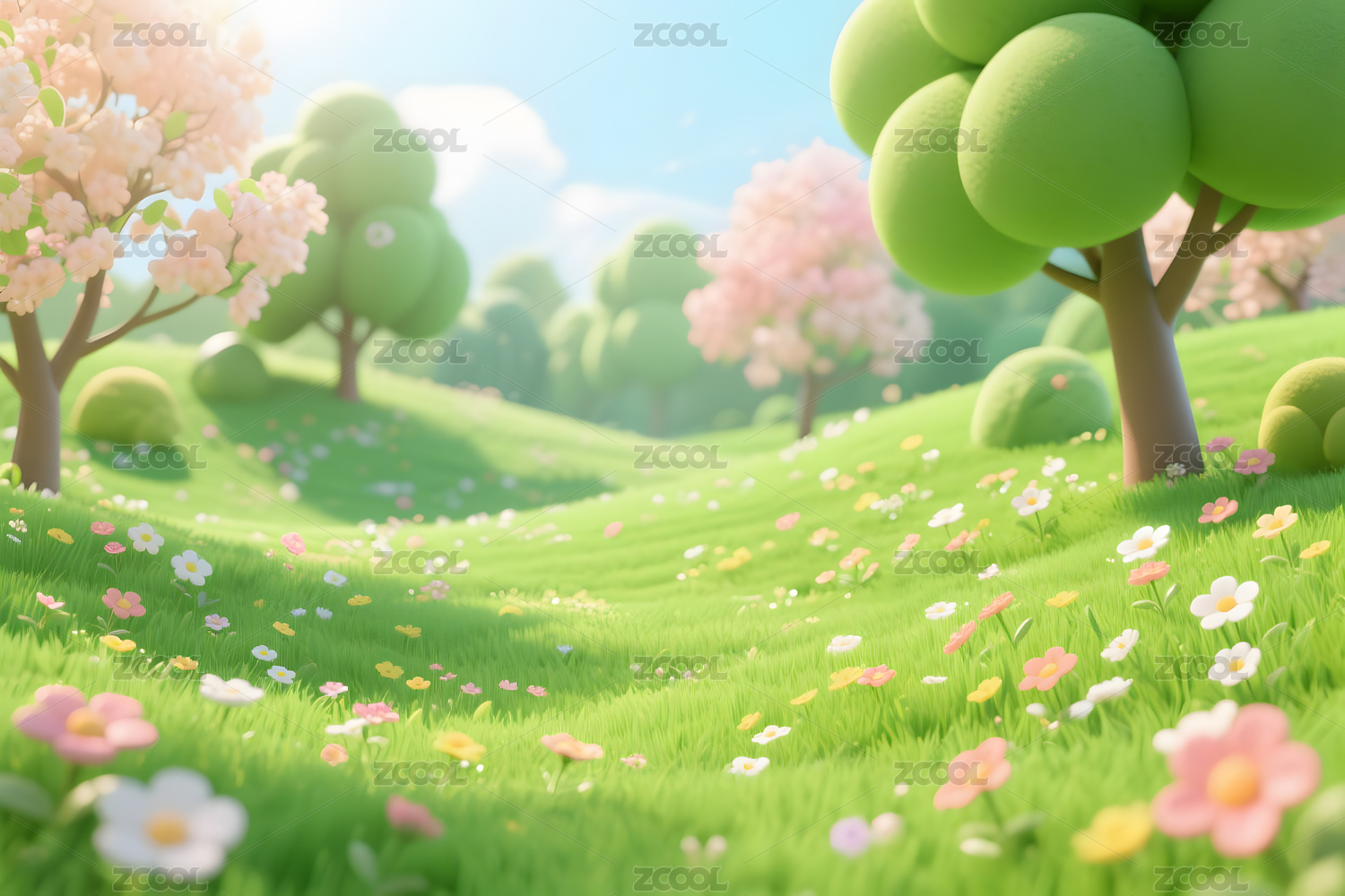 浪漫彩色花园花海花朵卡通插画背景壁纸