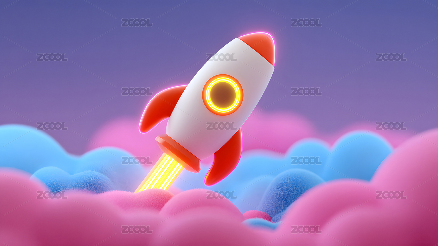 世界航天日,中国航天日,火箭,天空,卡通,可爱,三维,渲染,插图,蓝色