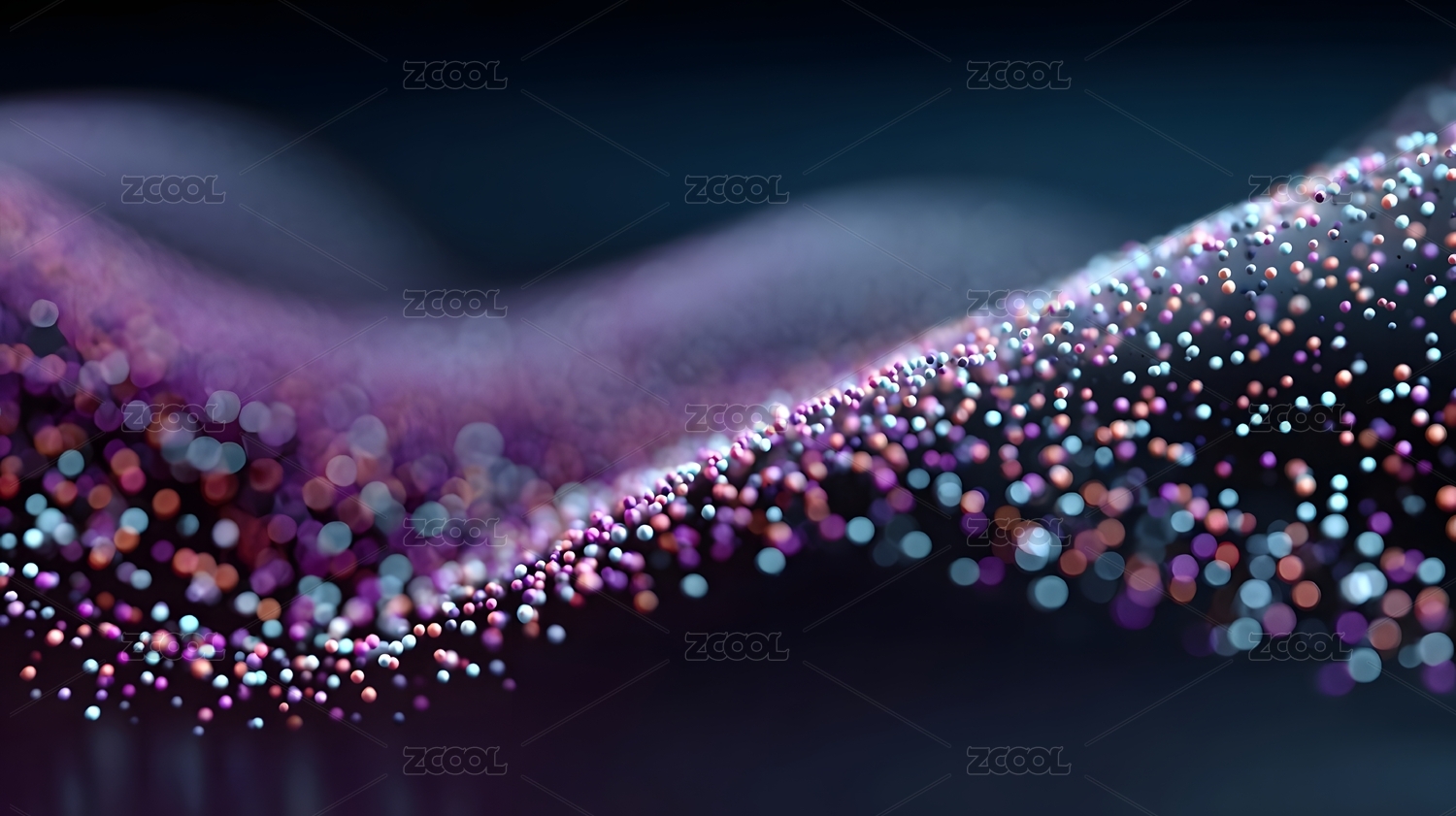 抽象粒子山峰,蓝色紫色光影,梦幻意境