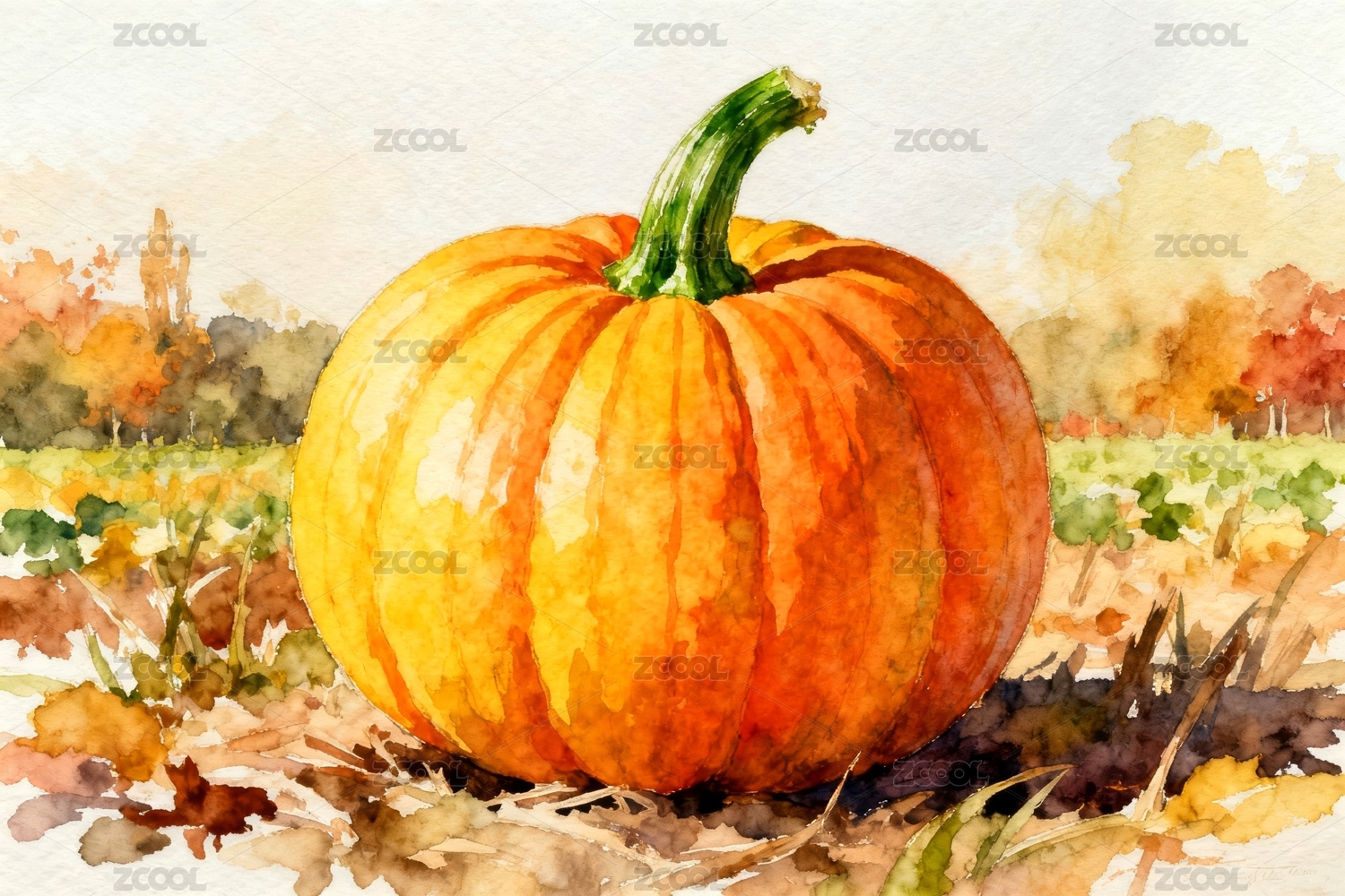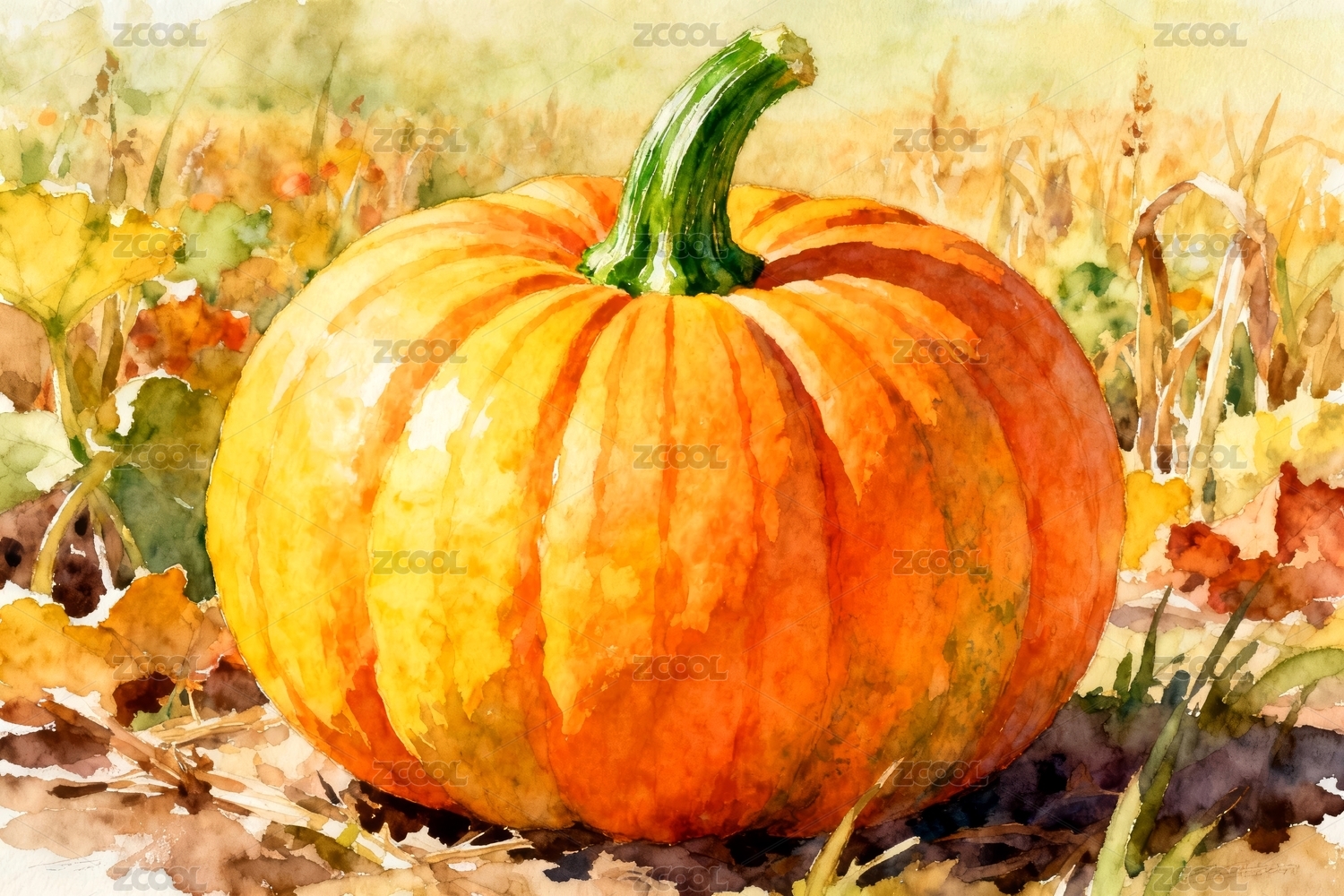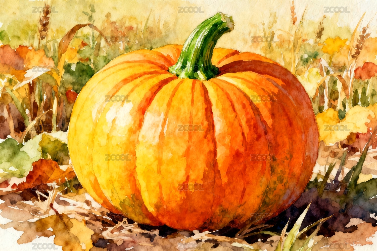 手绘南瓜水彩插画