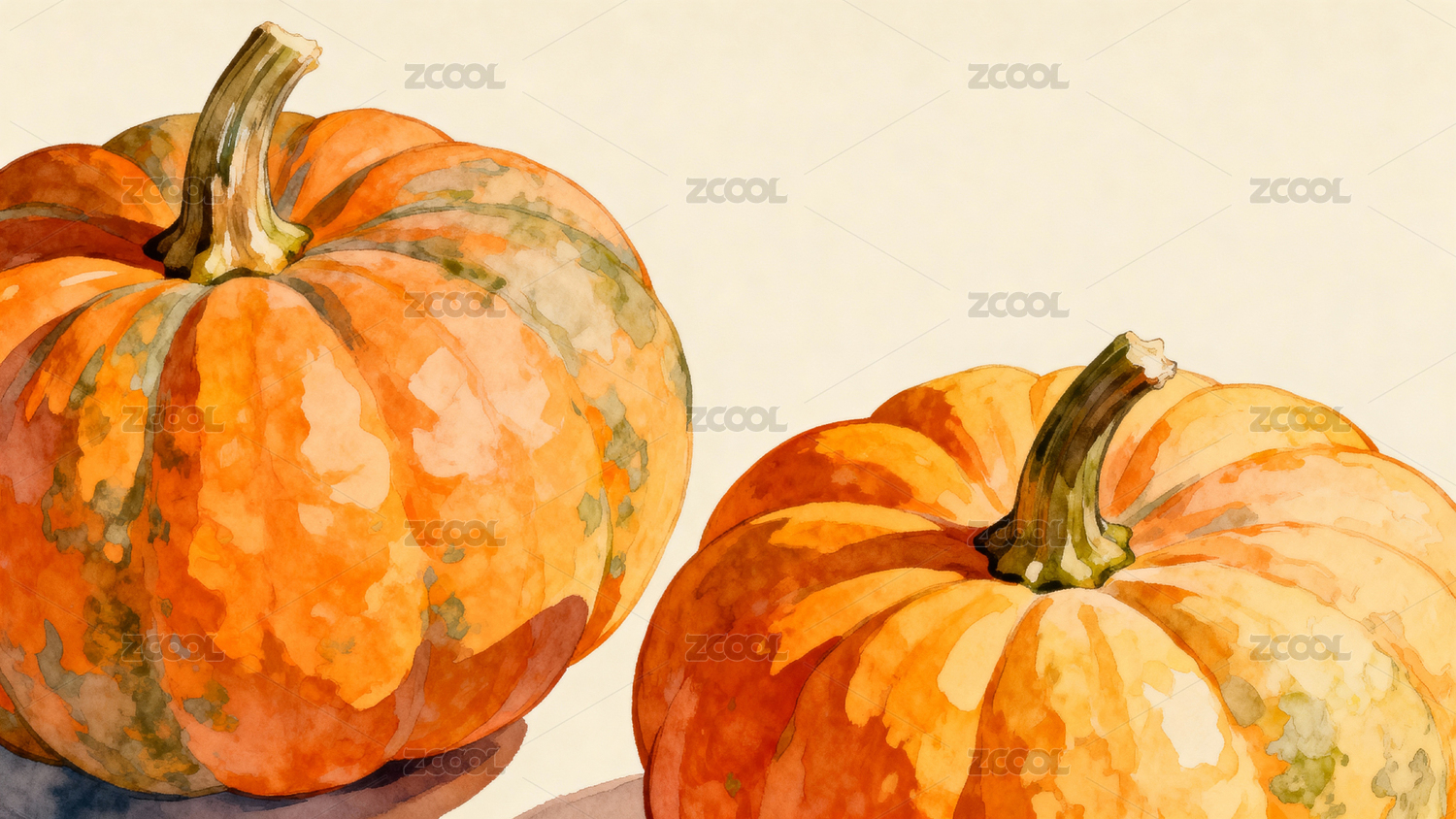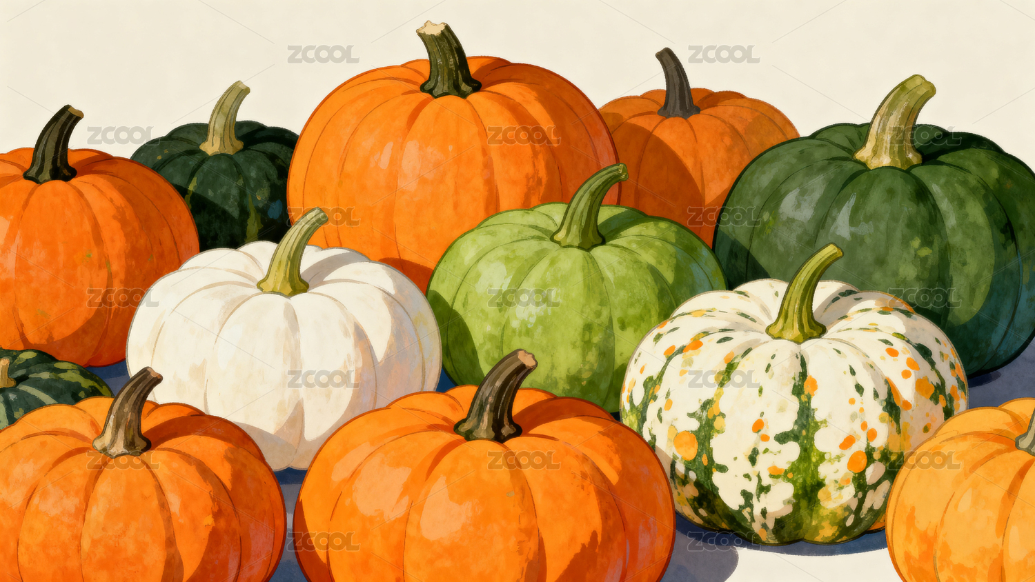 多彩南瓜水彩静物场景