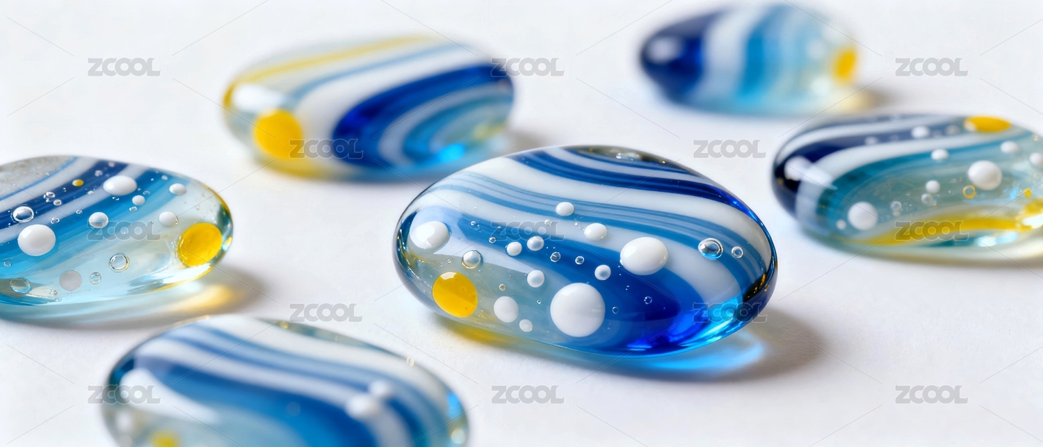 主视觉,商业,壁纸,质感,创意,玻璃珠,多彩,蓝白,黄点,圆润