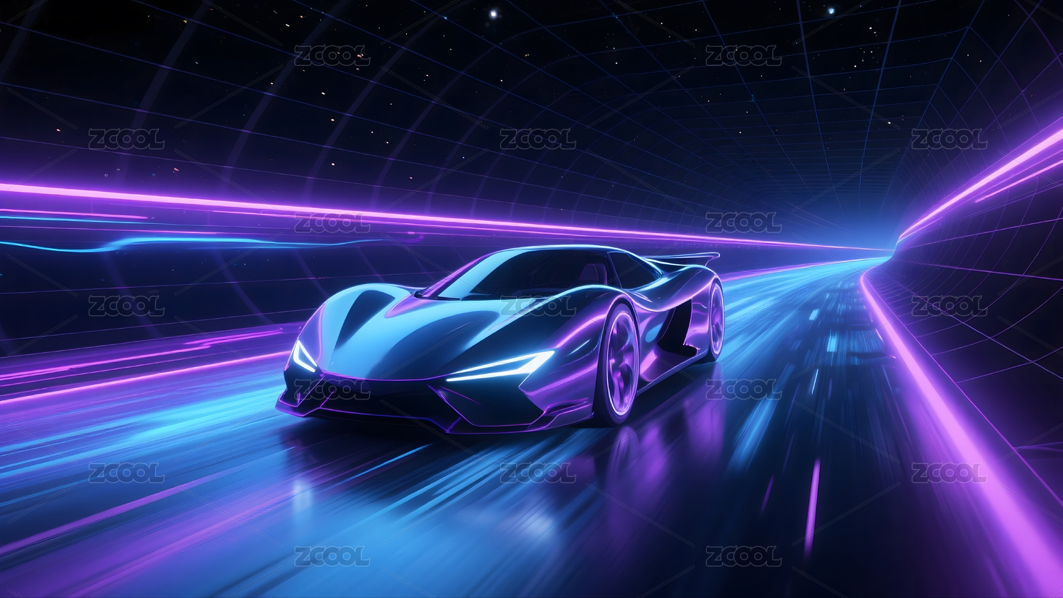 科幻跑车在霓虹赛道飞驰