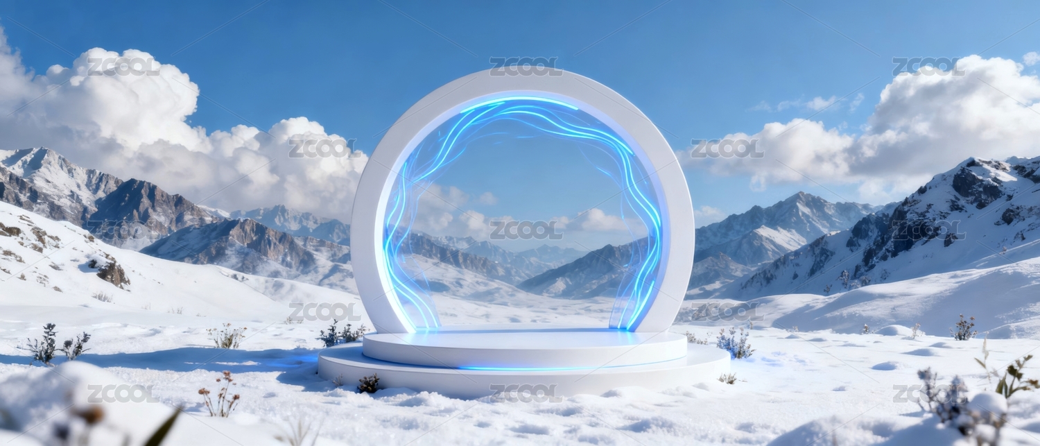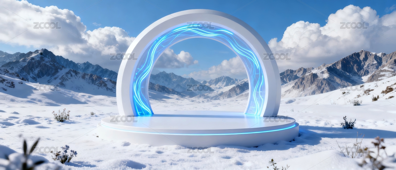 雪山圆形舞台未来科技感插图